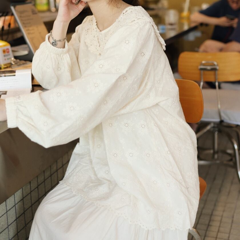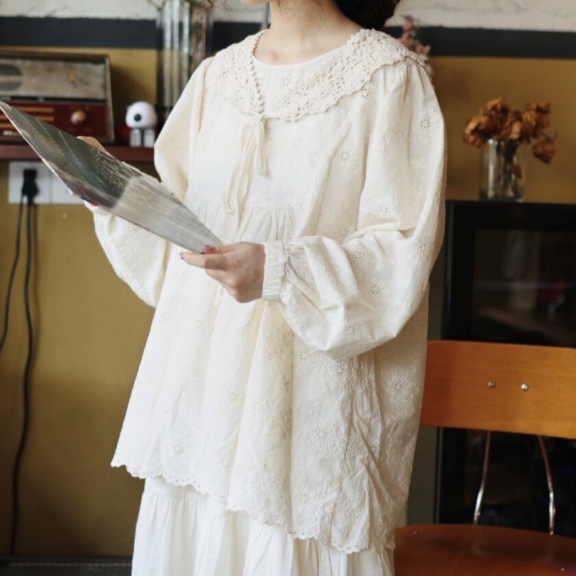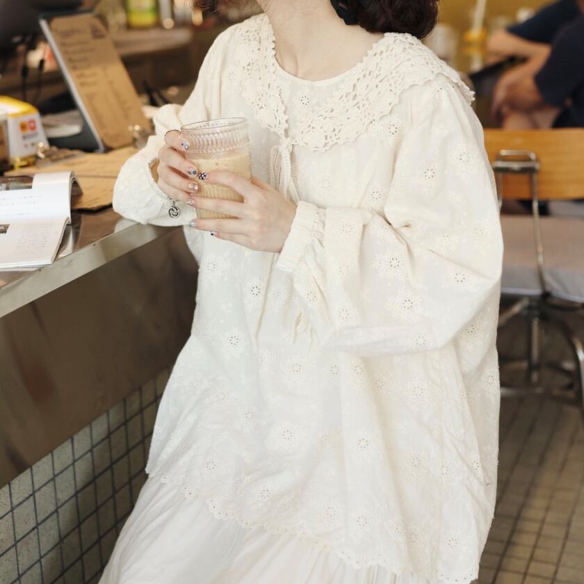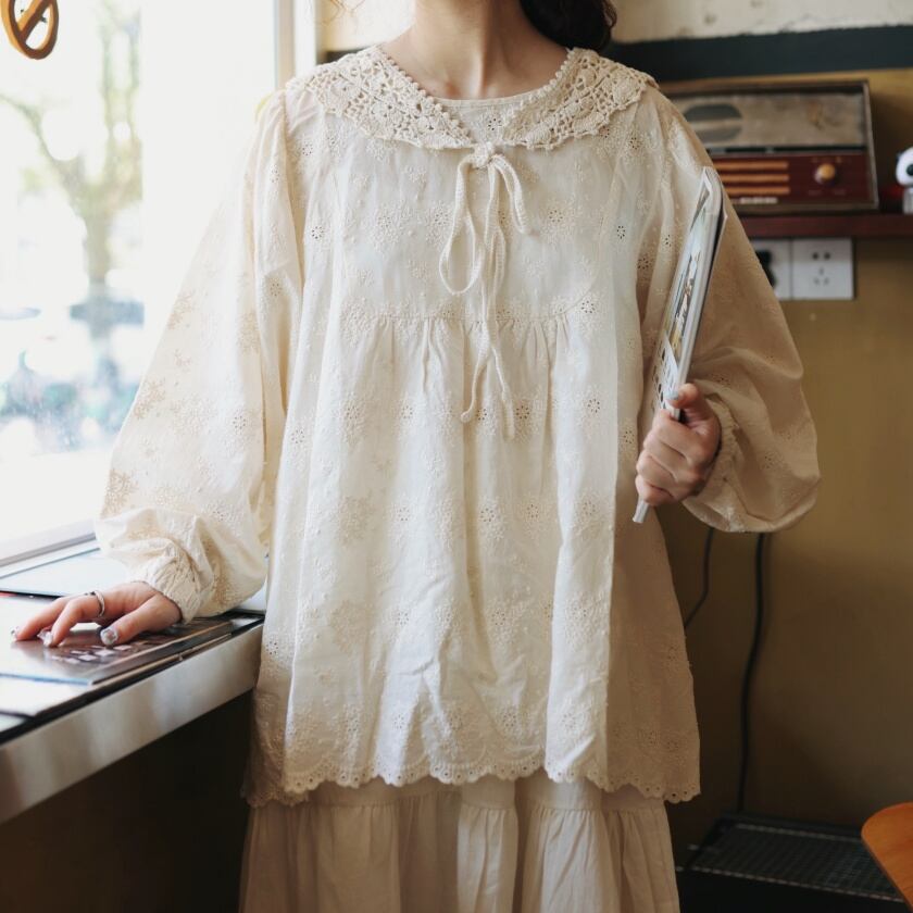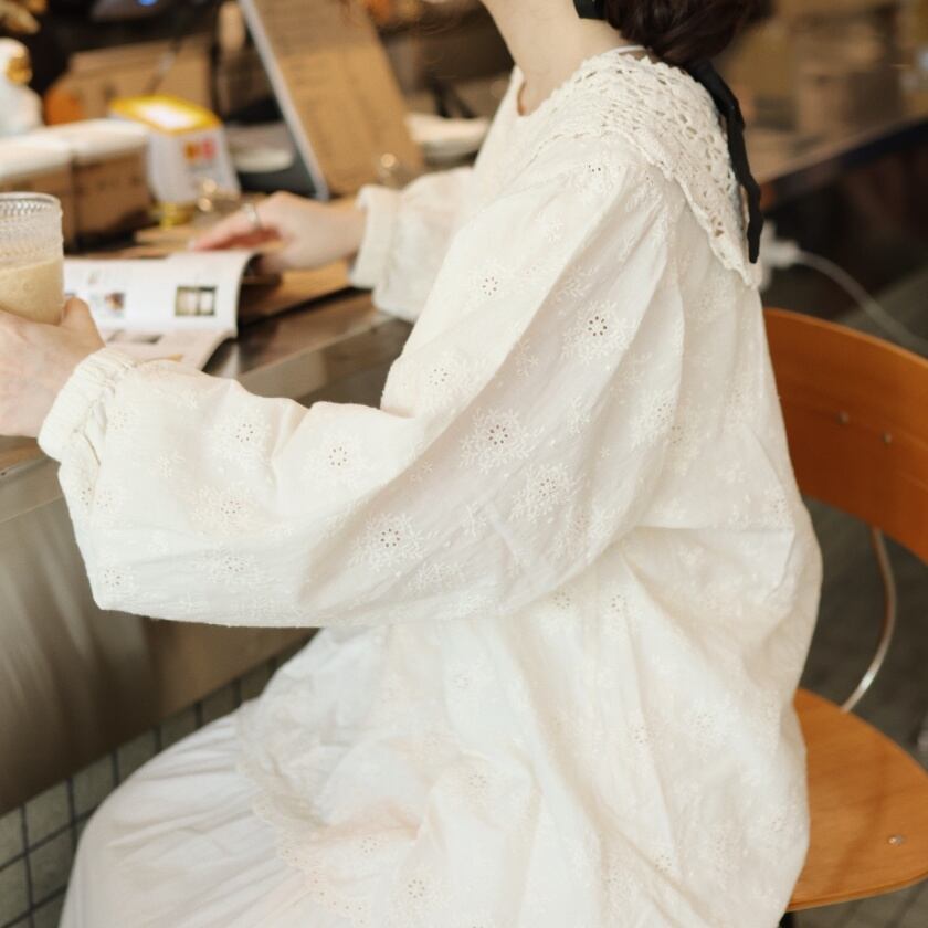フラワーパンチングブラウス T0049