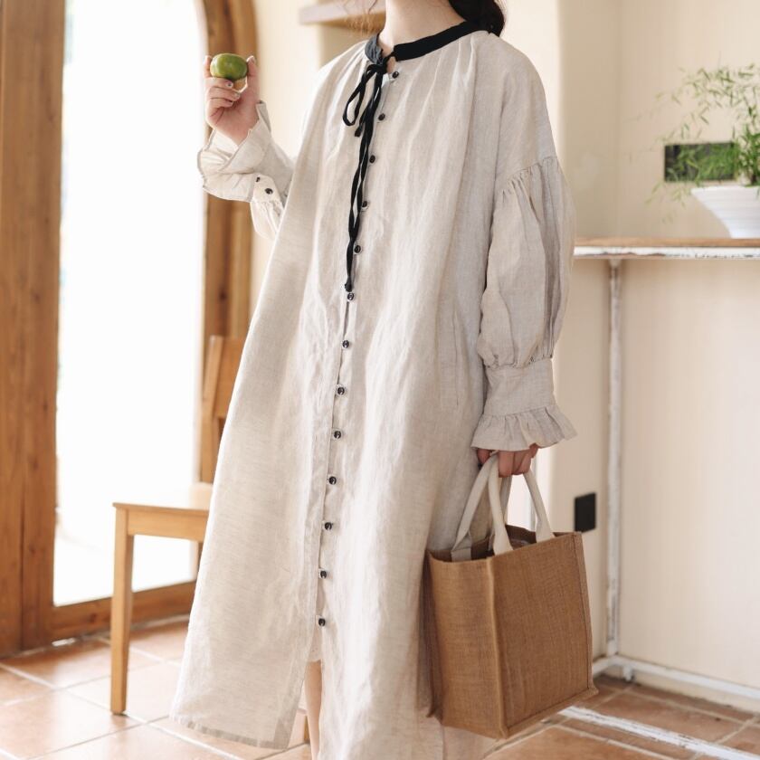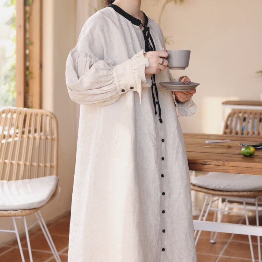 バイカラーフリルワンピース T0051