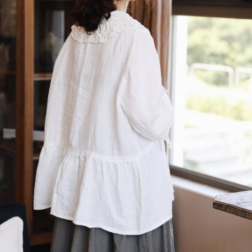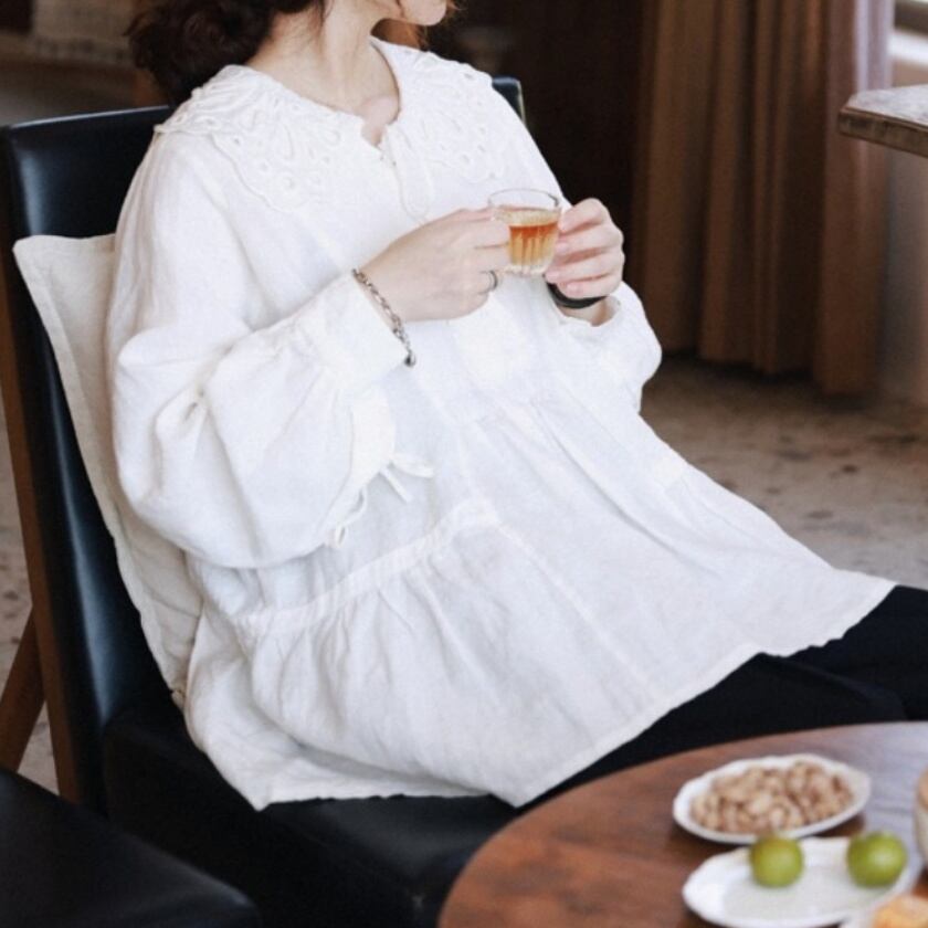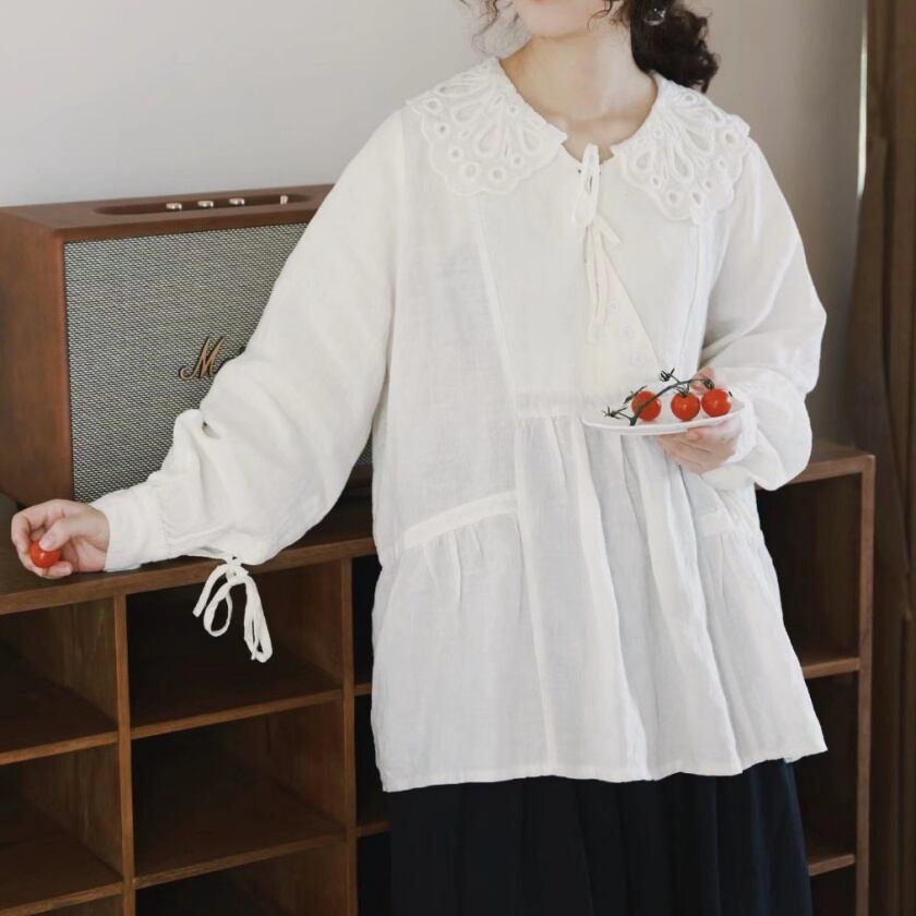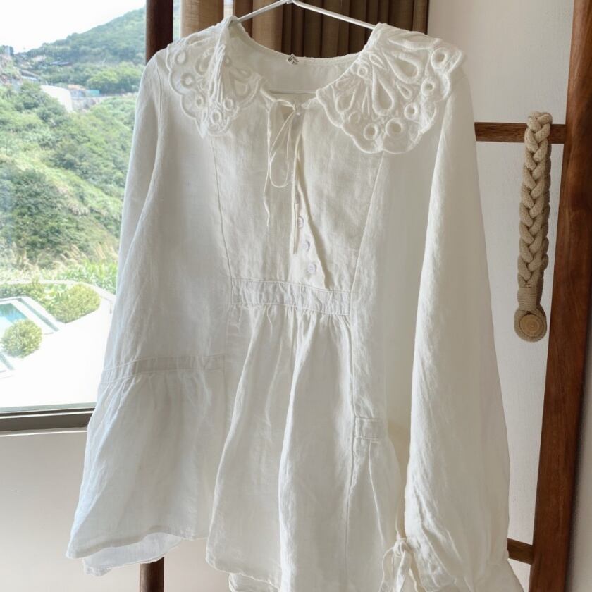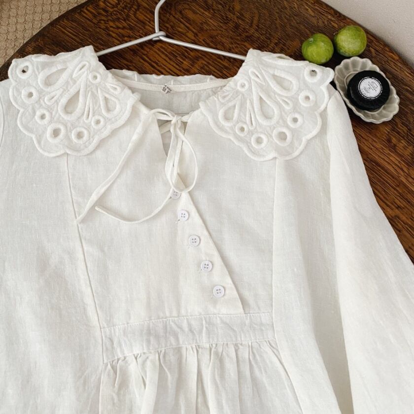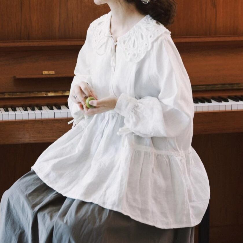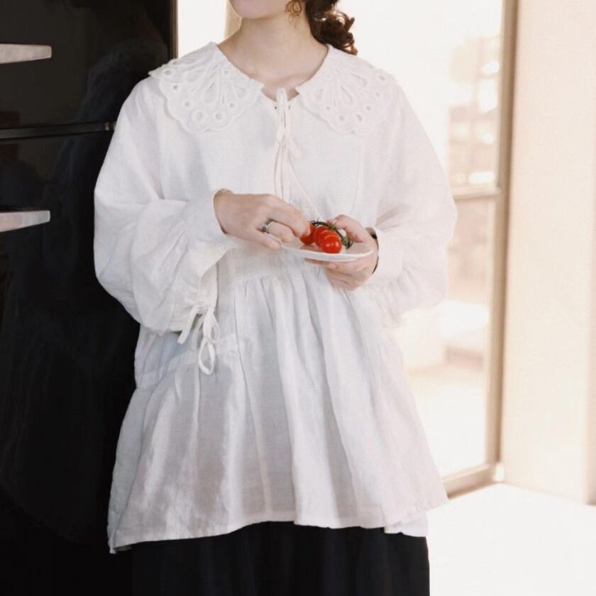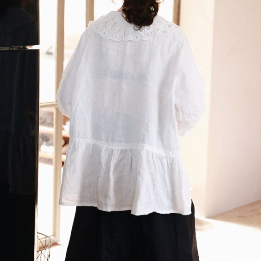 パンチングレースカラーブラウス T0111