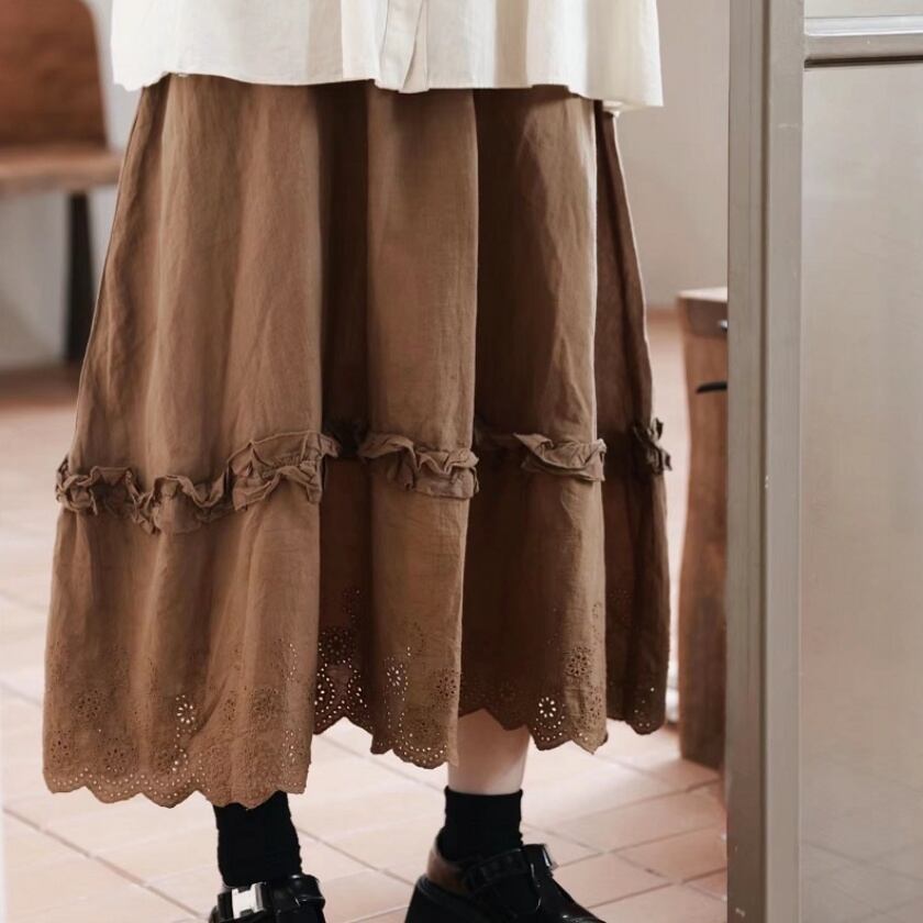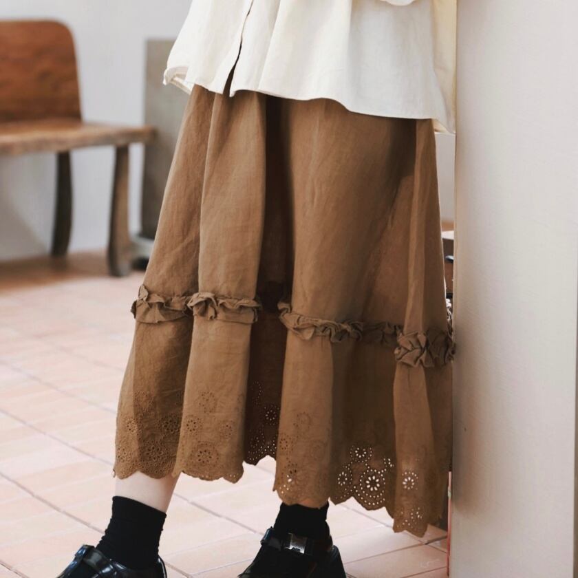 フリルデザインフレアスカート T0113