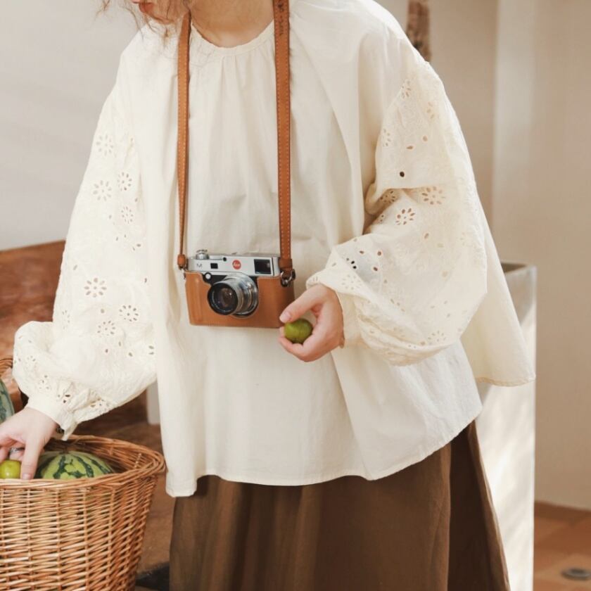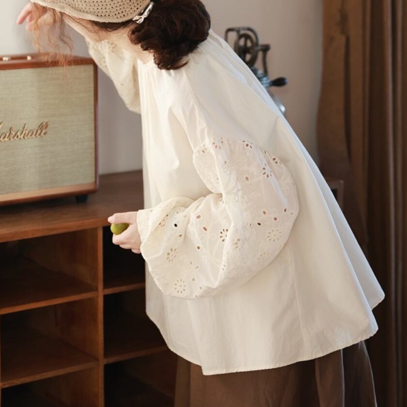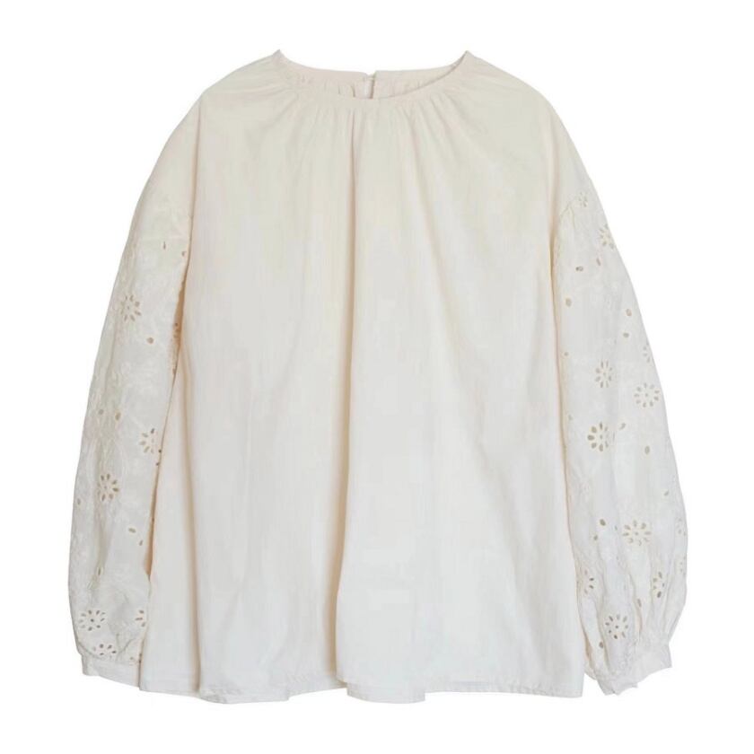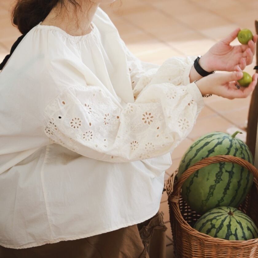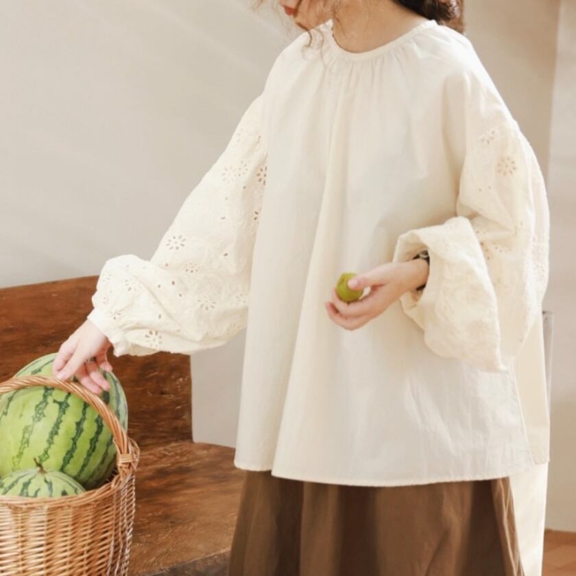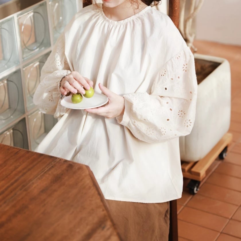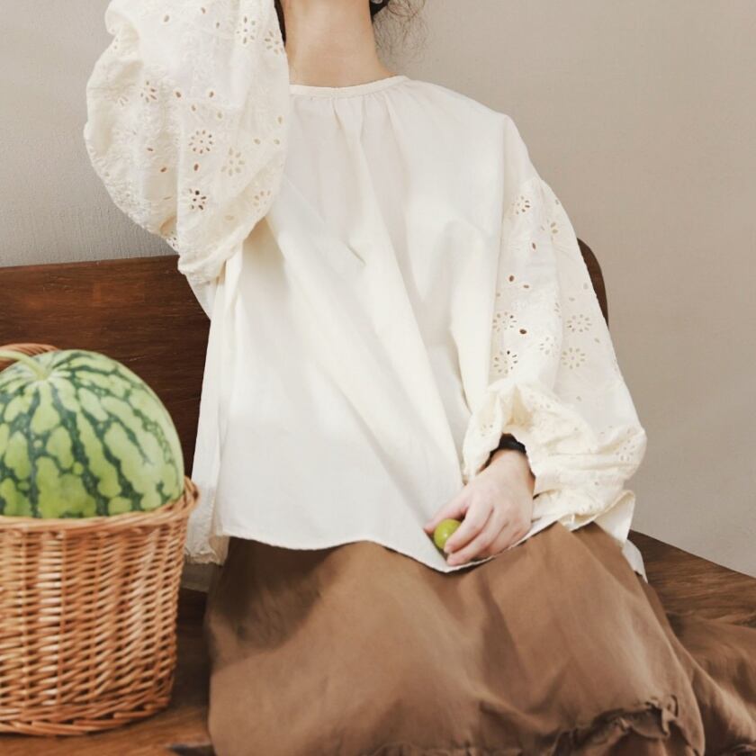 パンチングレーススリーブトップス T0116