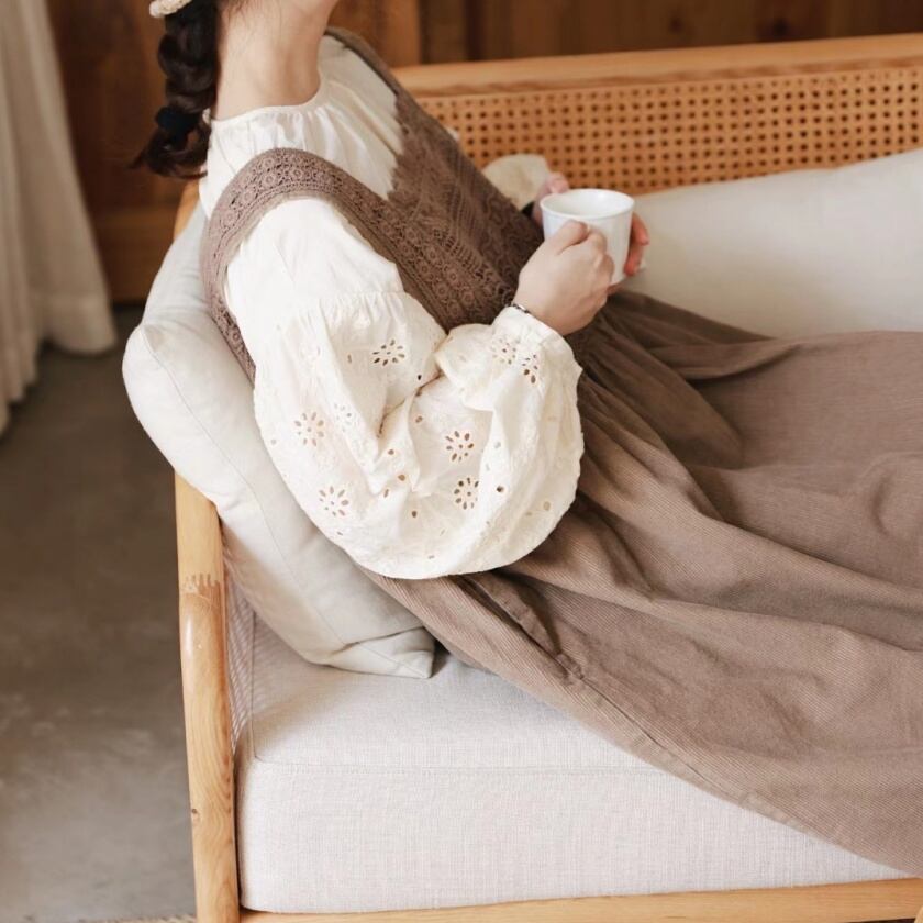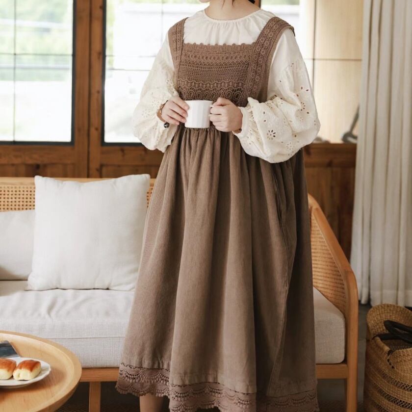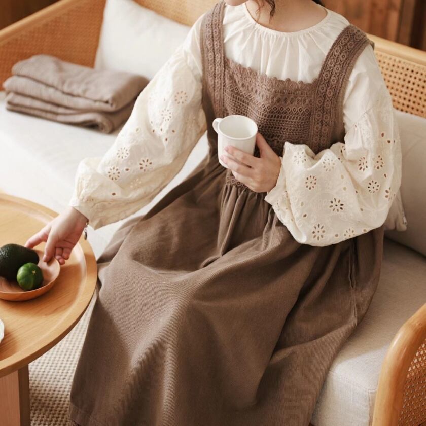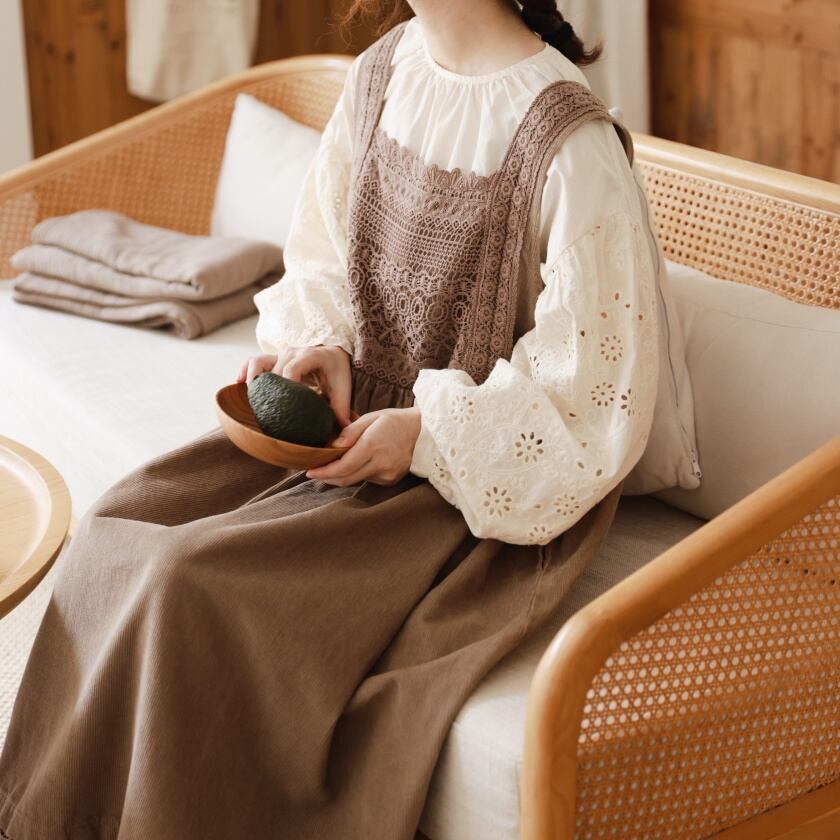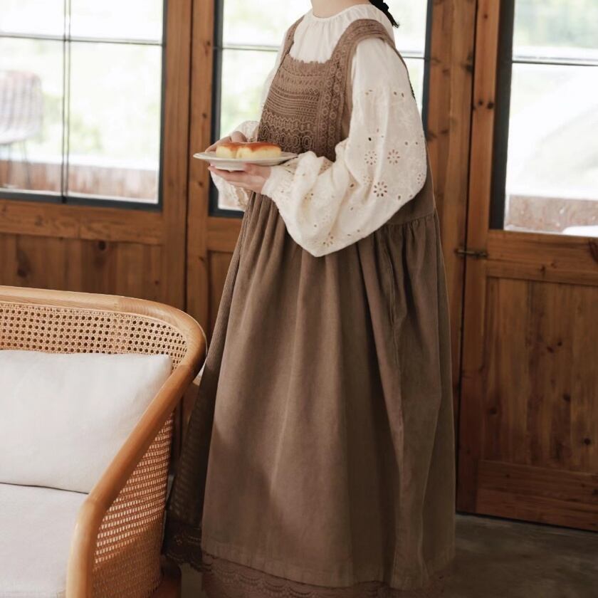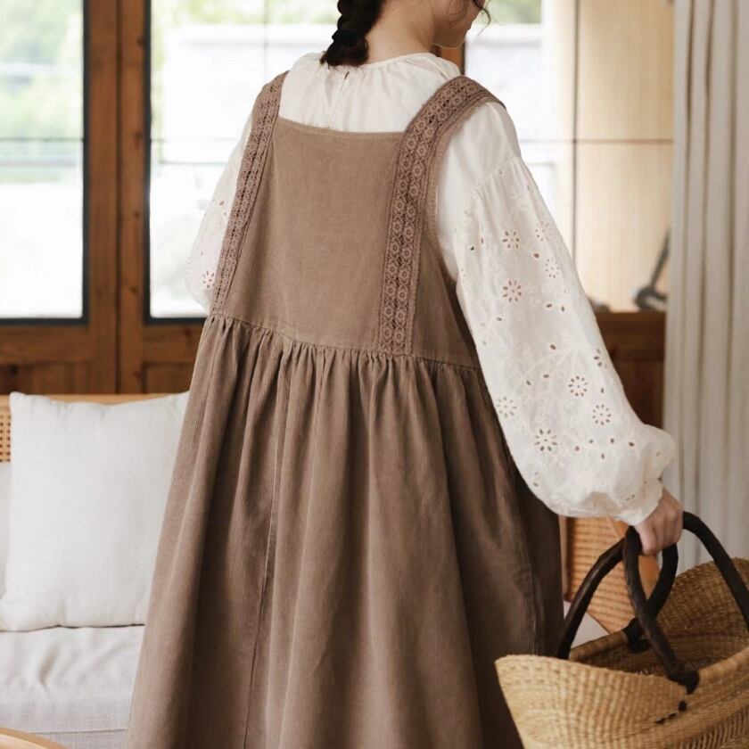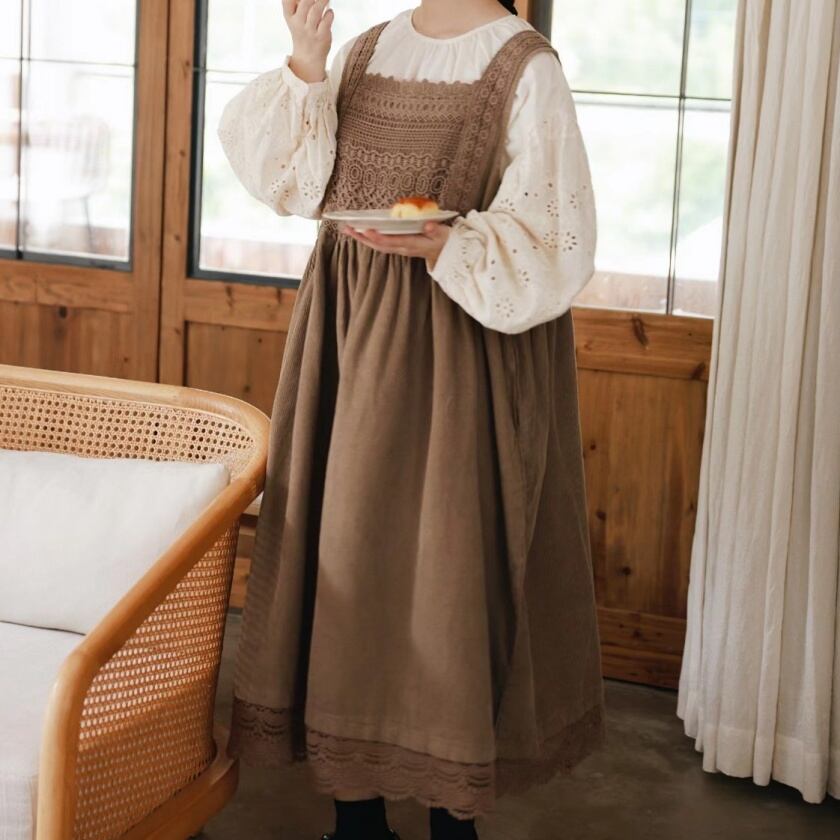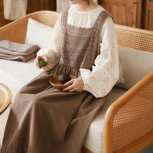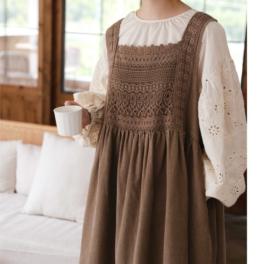 レーススカラップエプロンワンピース T0125