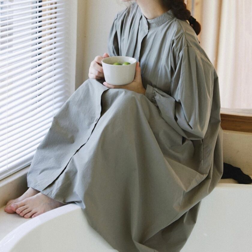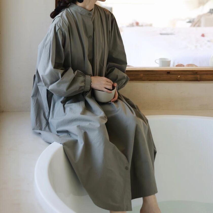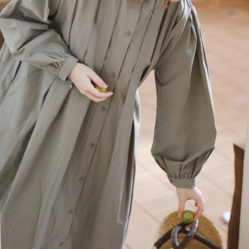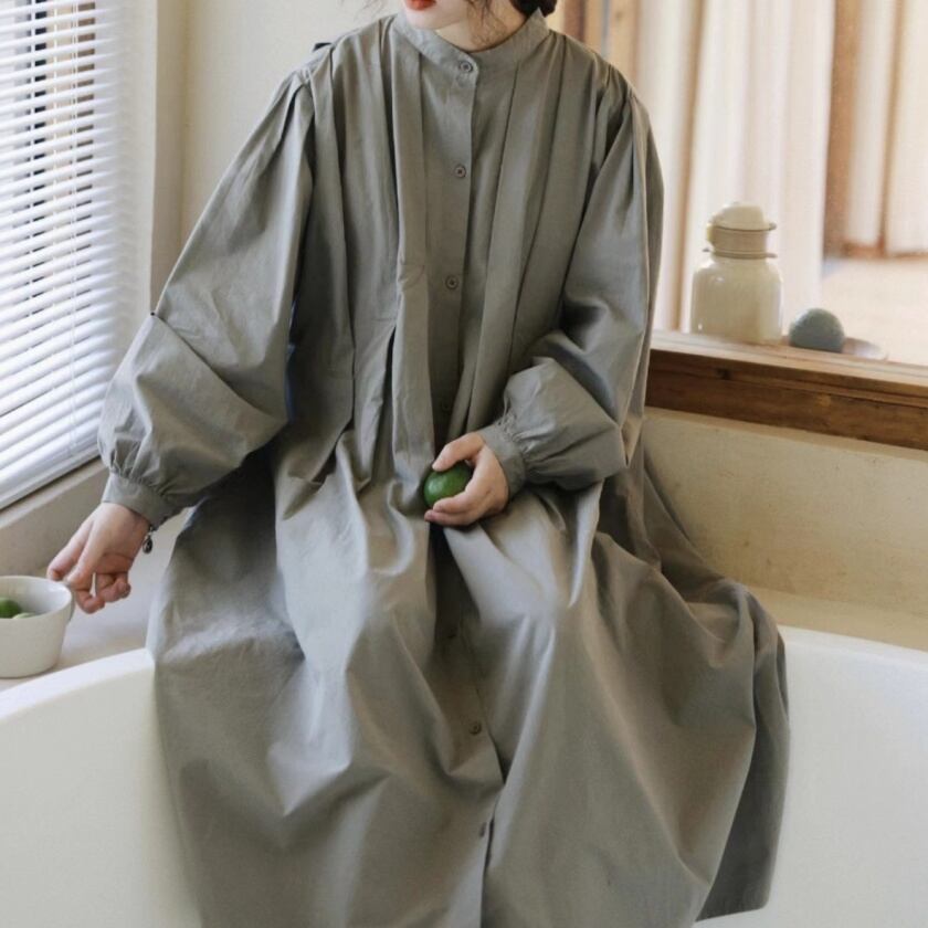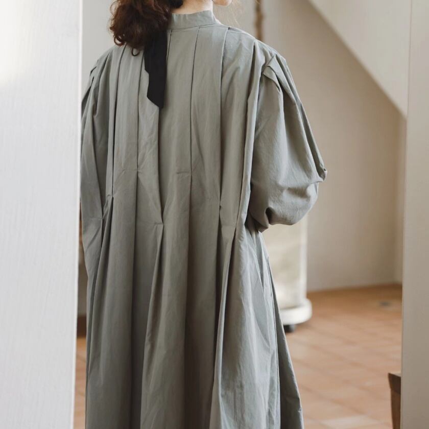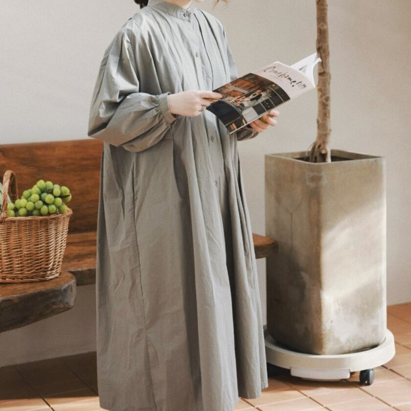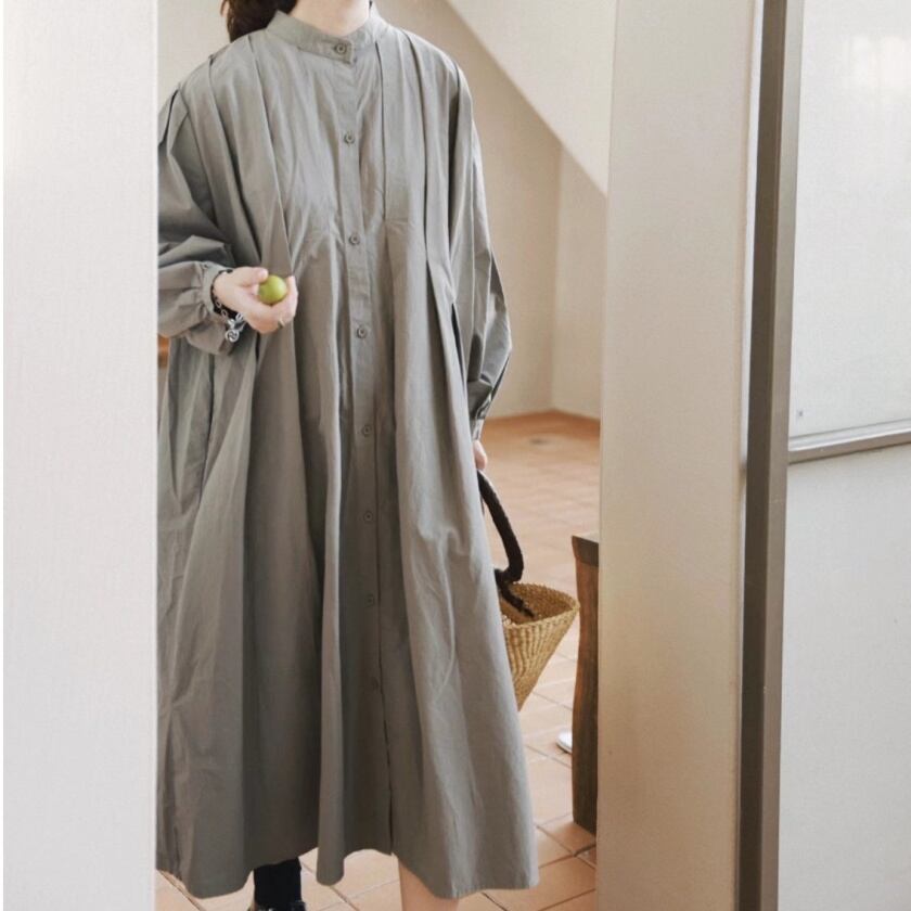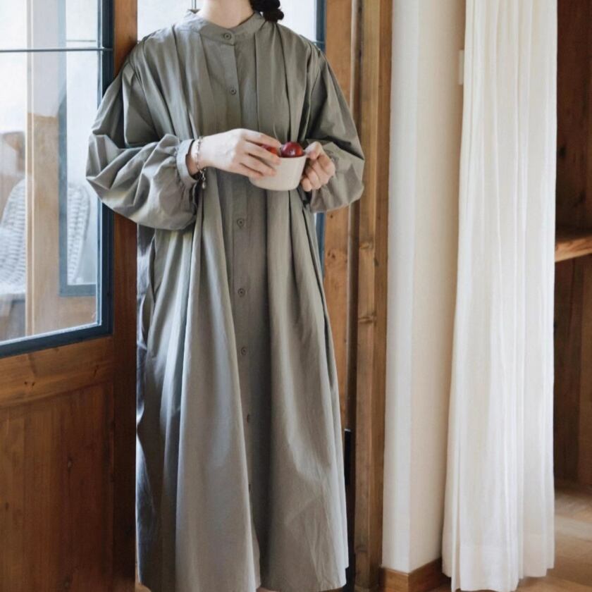 スタンドカラータックワンピース T0138