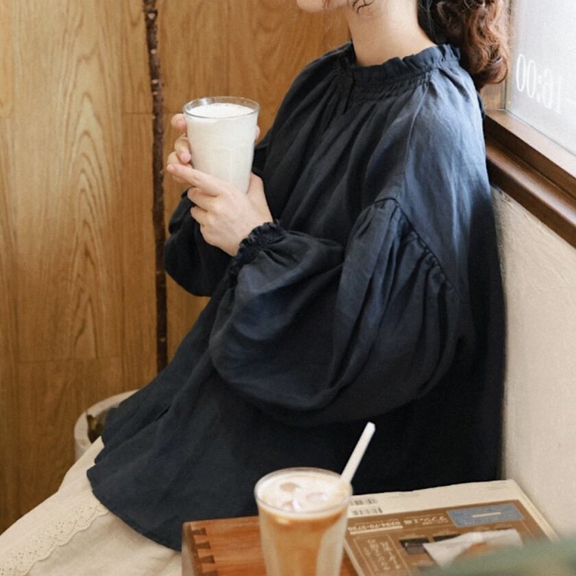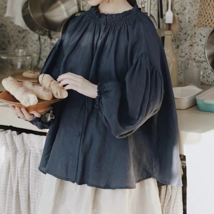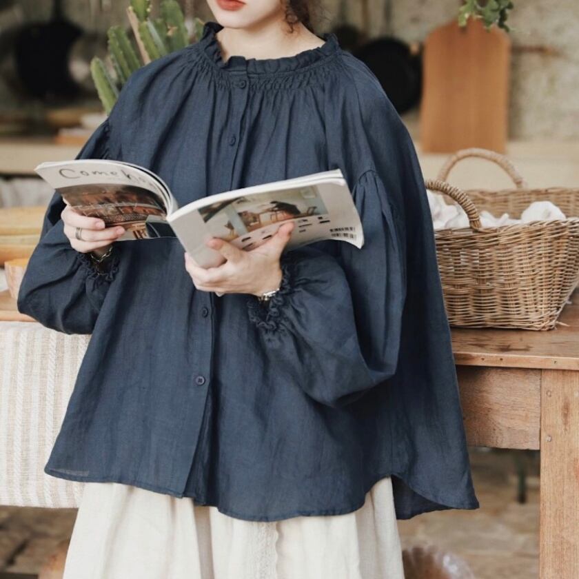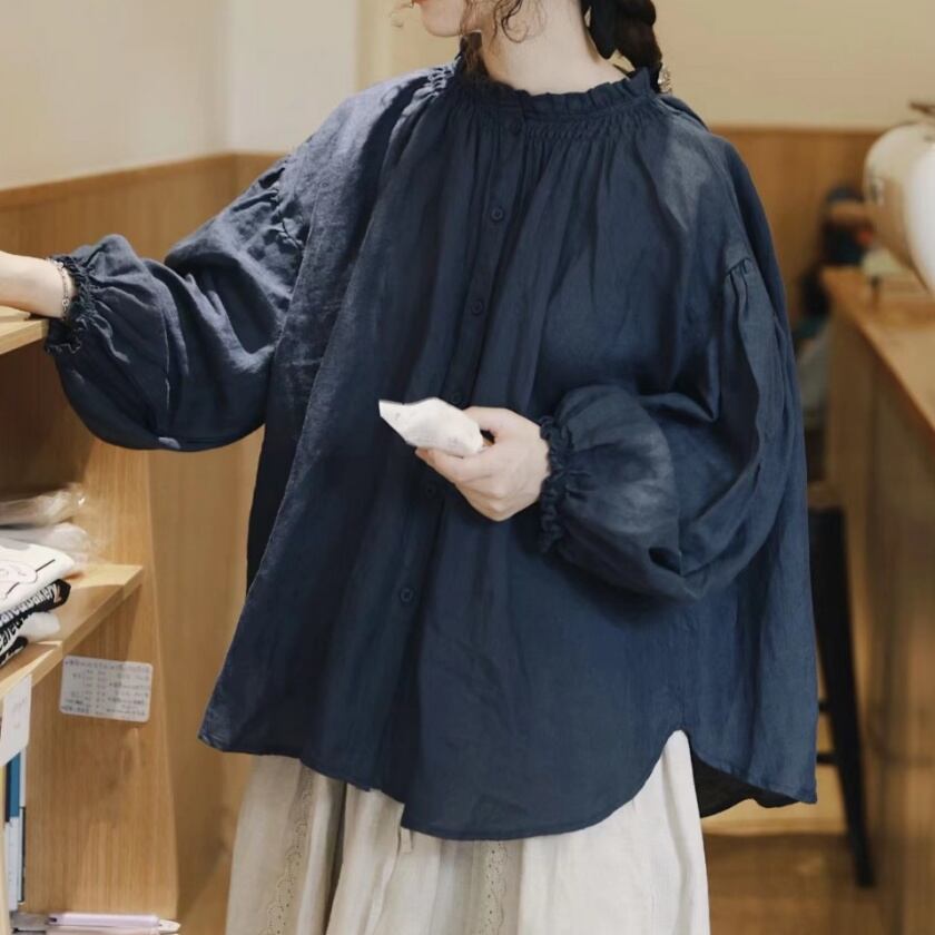 スタンドフリルカラーブラウス T0140