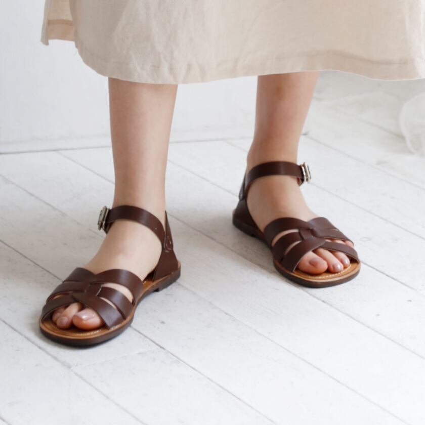 フィッシュボーンフラットサンダル T0144