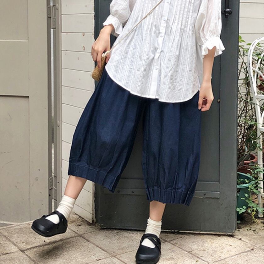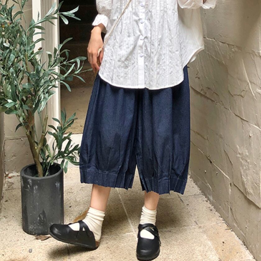 デニムデザインワイドパンツ T0193