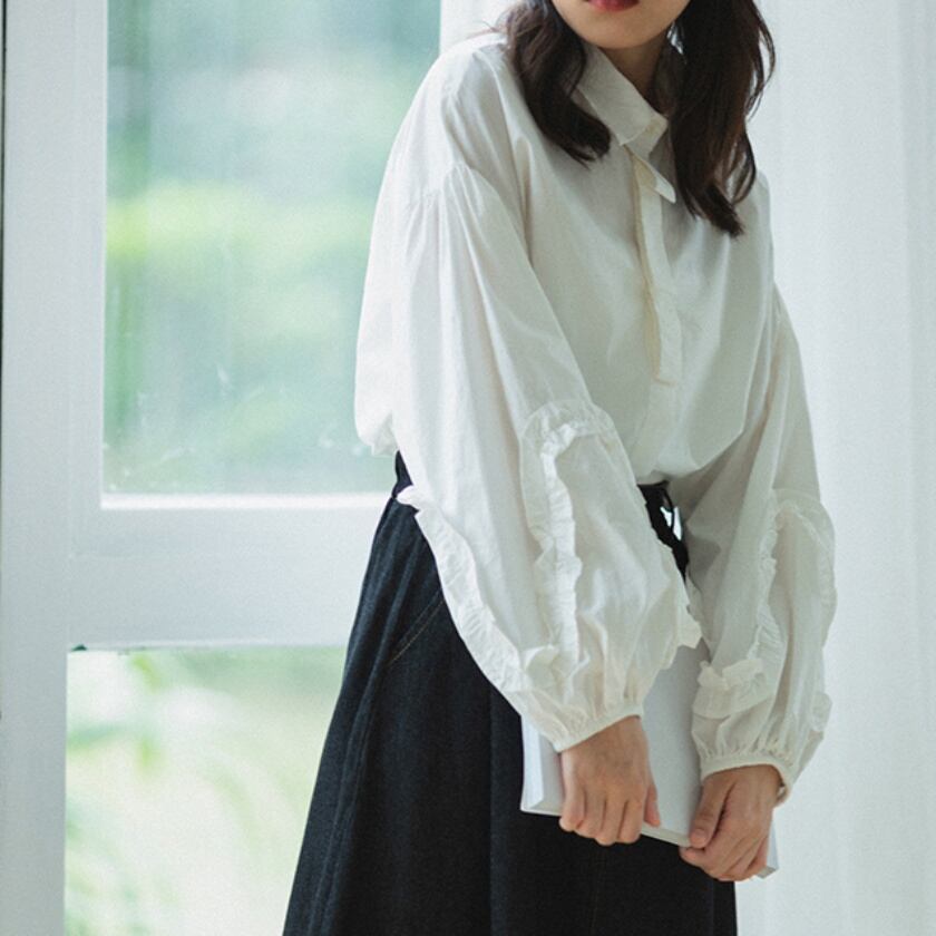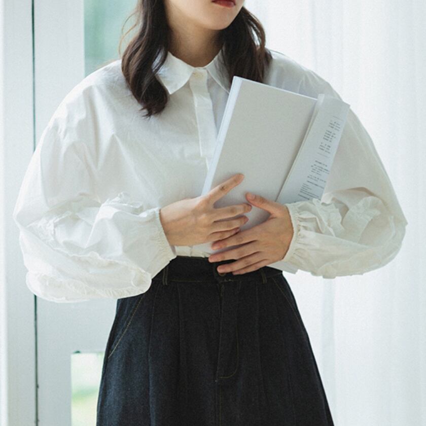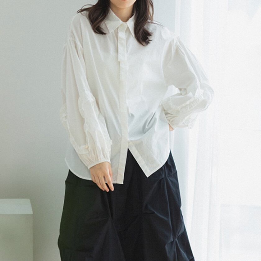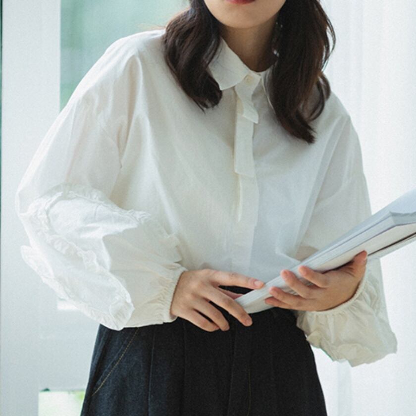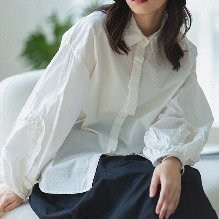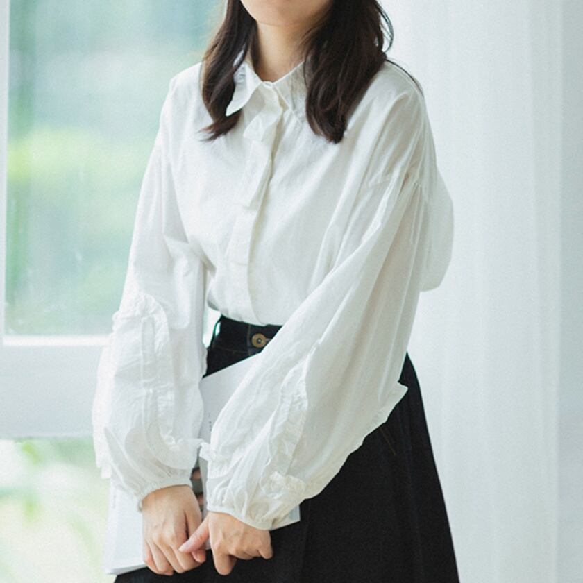 パフスリーブフレンチレースシャツ T0273