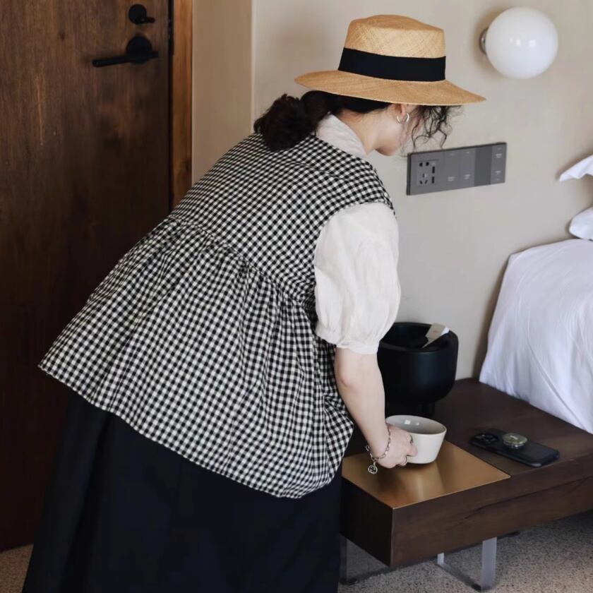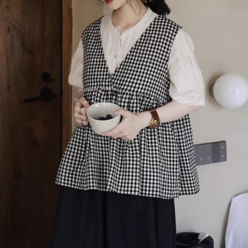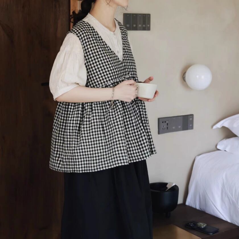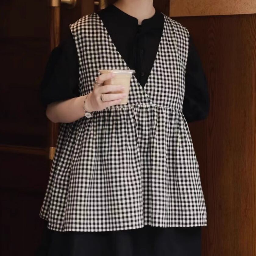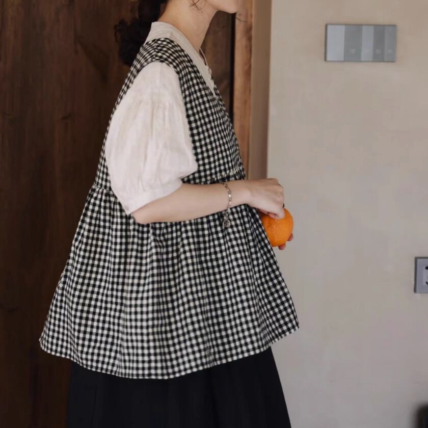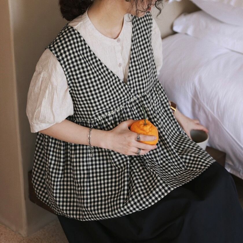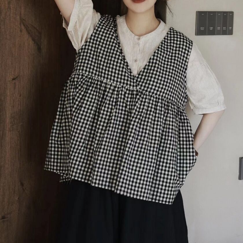 ギンガムチェックカシュクールベスト T0295