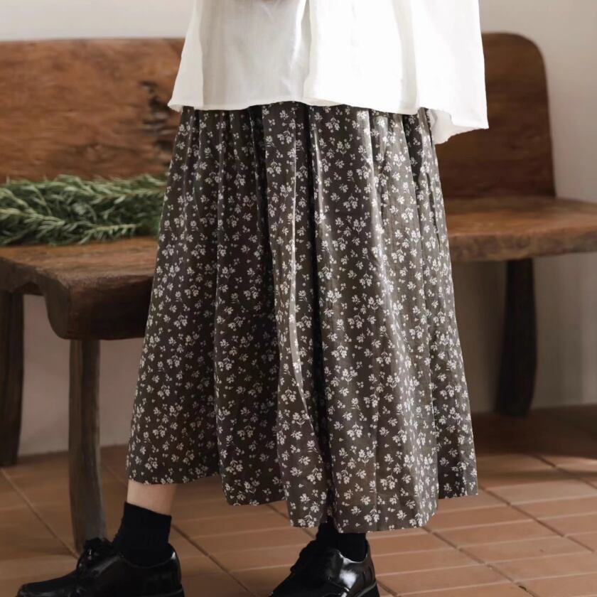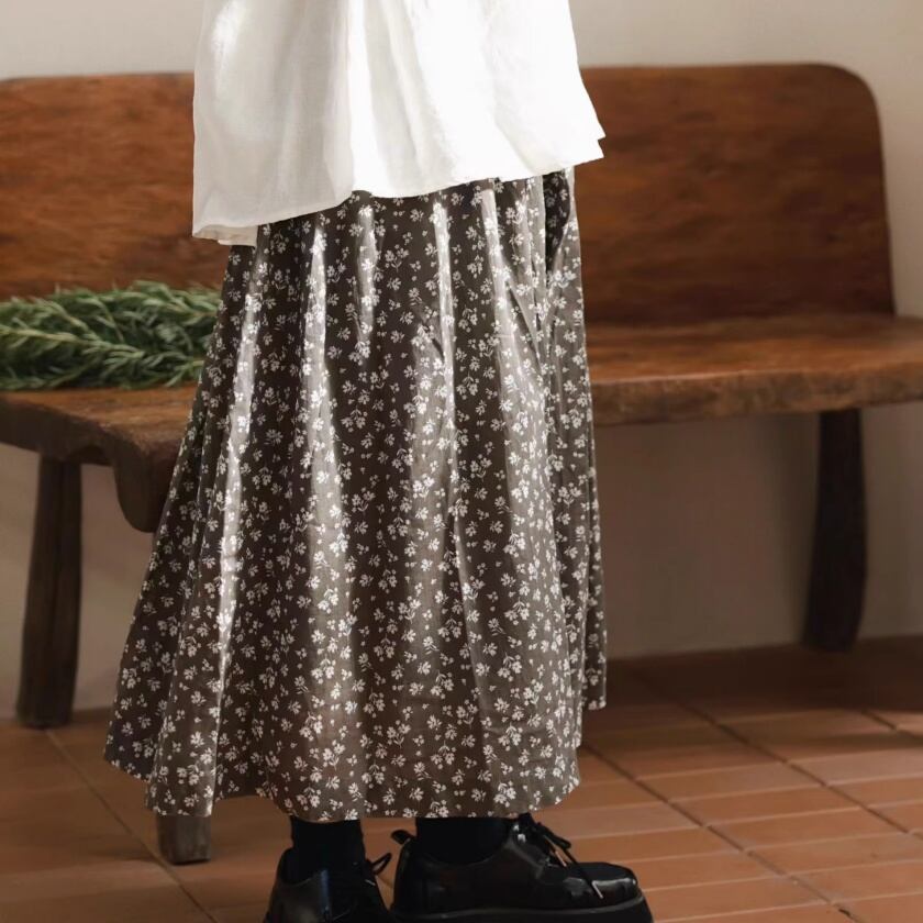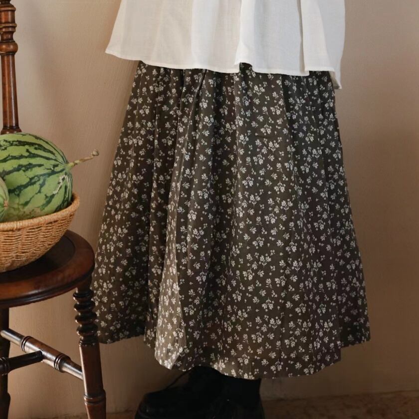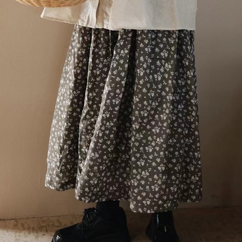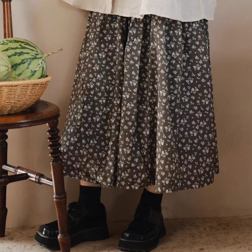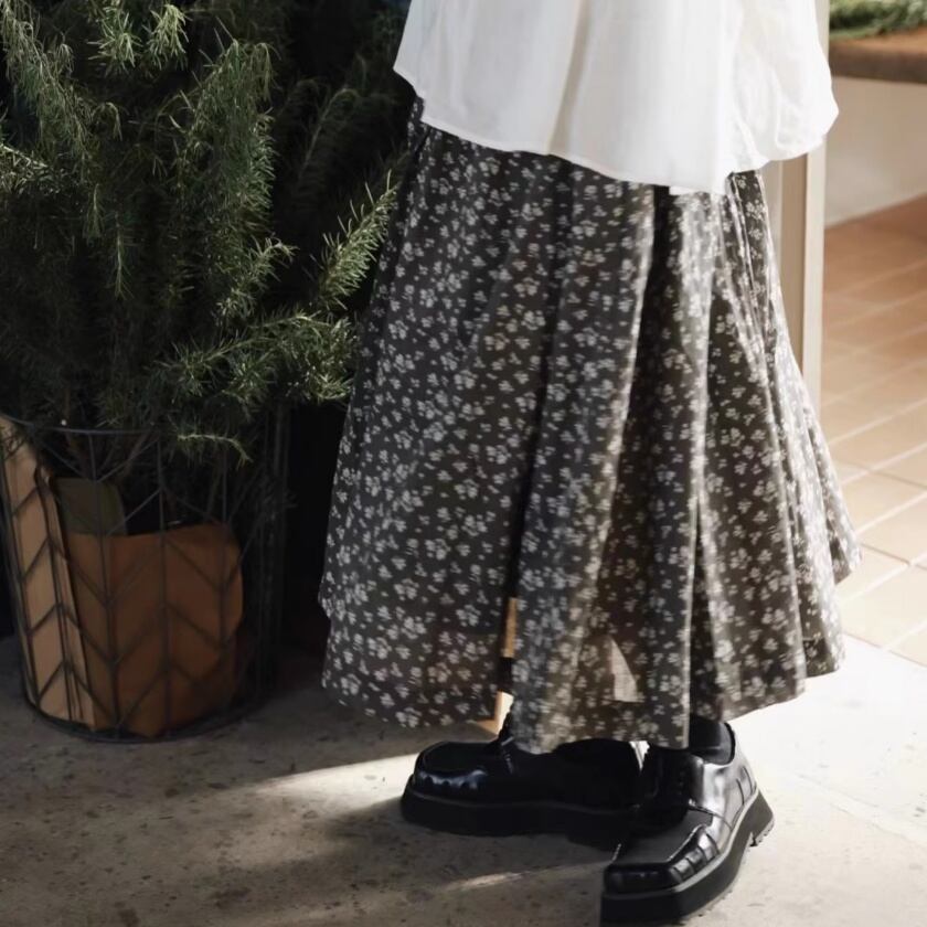 フラワードロストギャザースカート T0308
