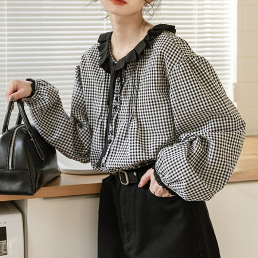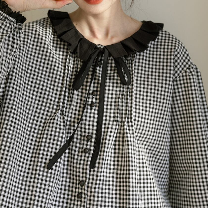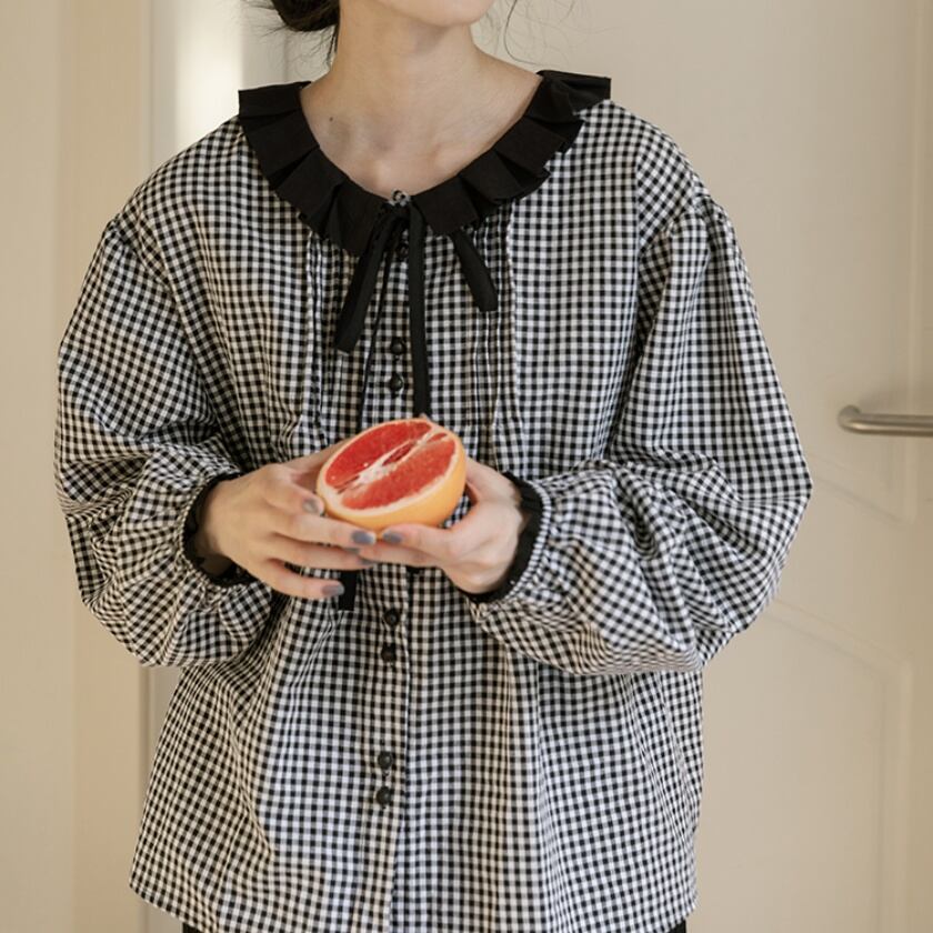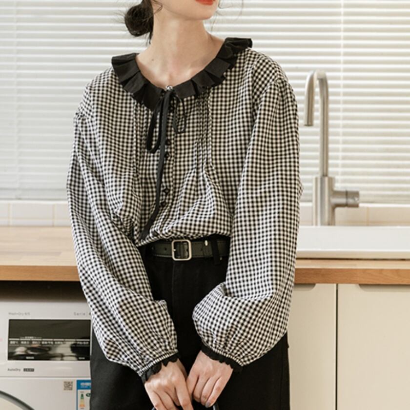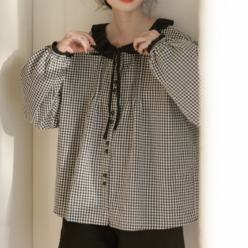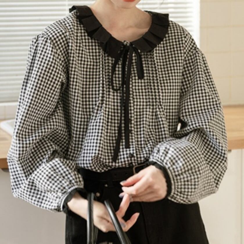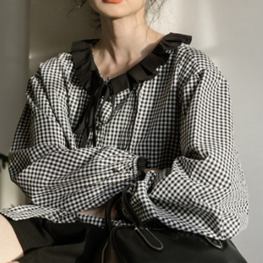 フリルカラーリボンブラウス T0349