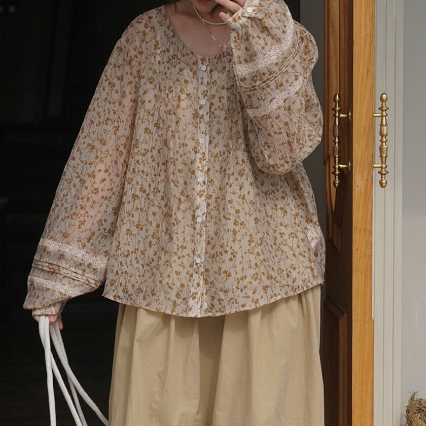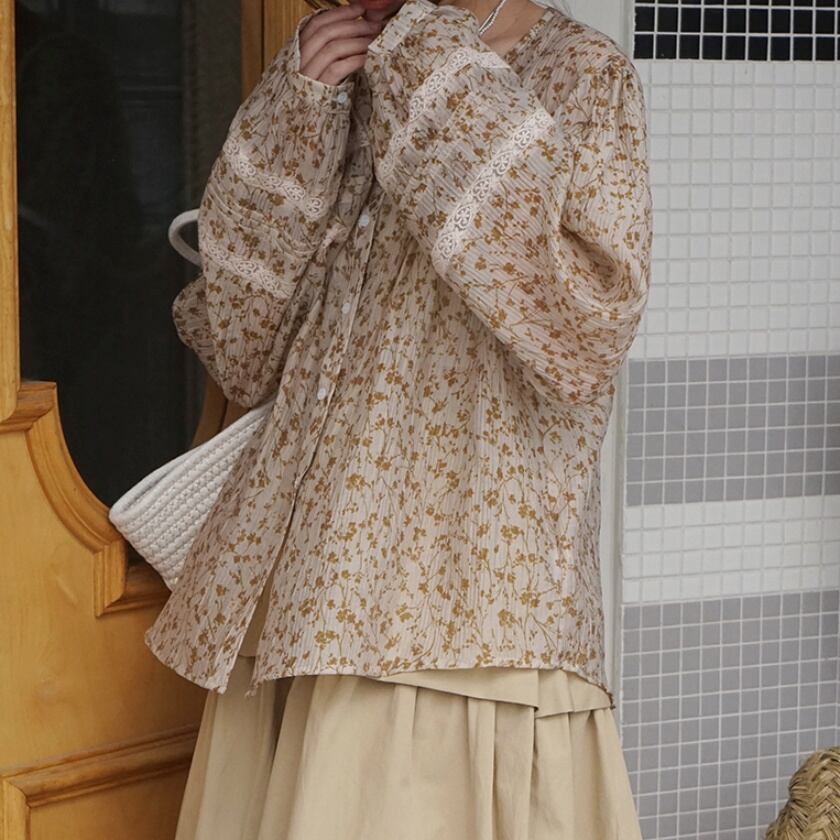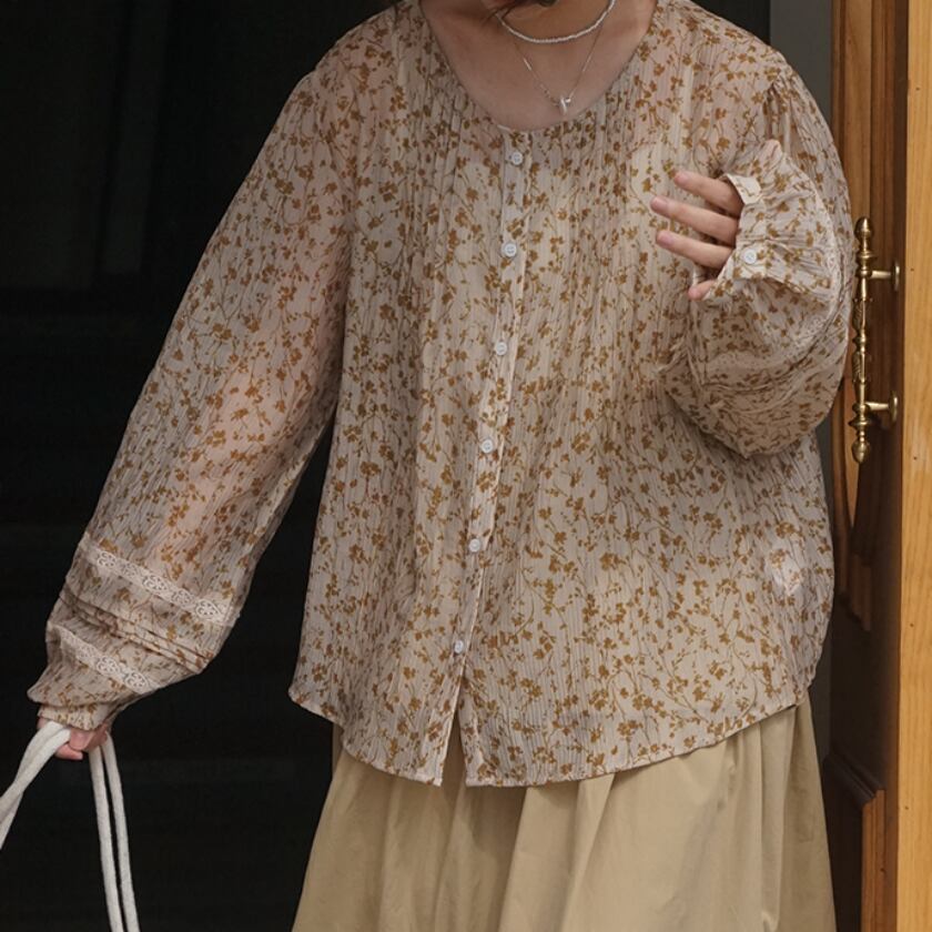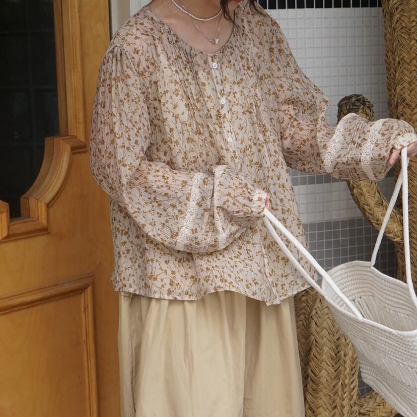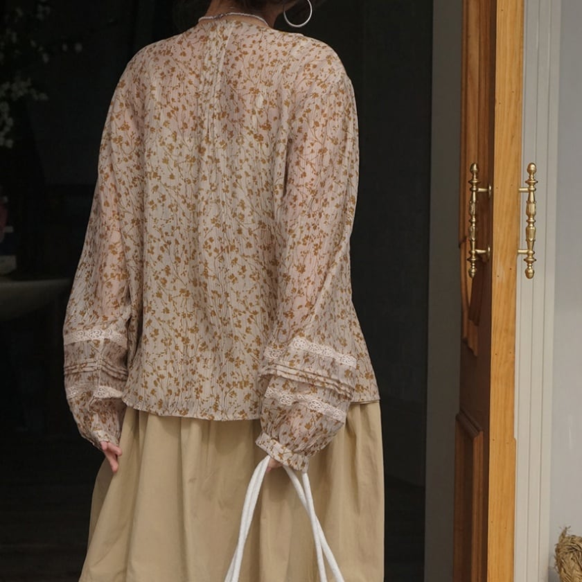 フラワーランタンスリーブブラウス T0362