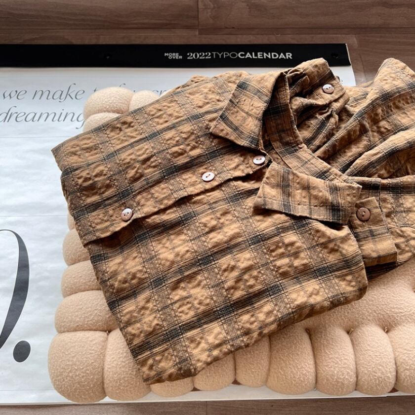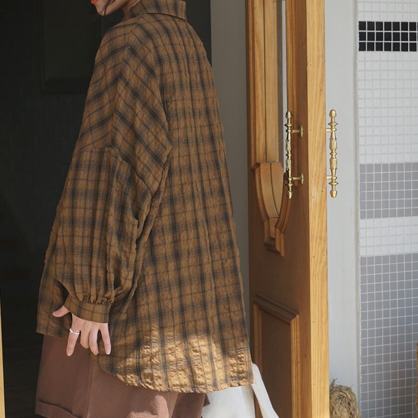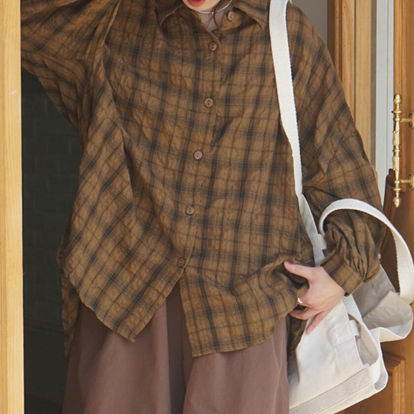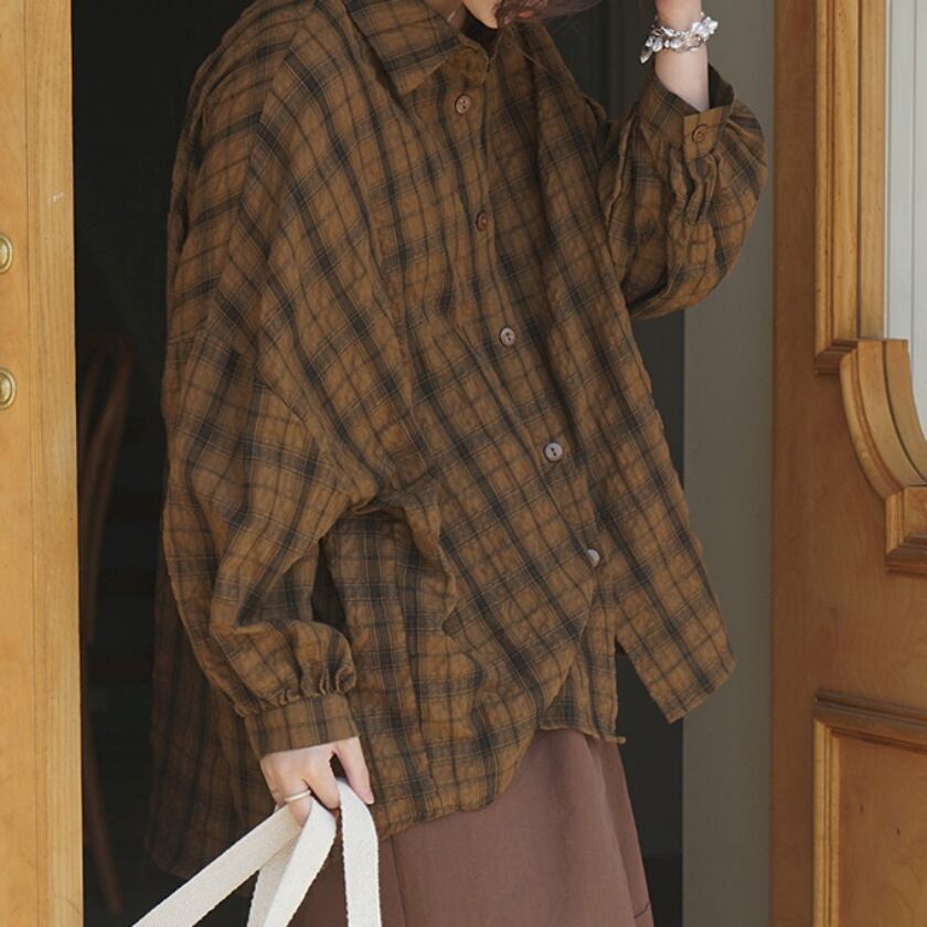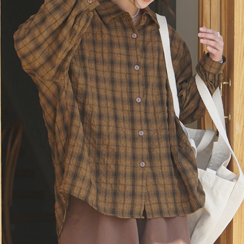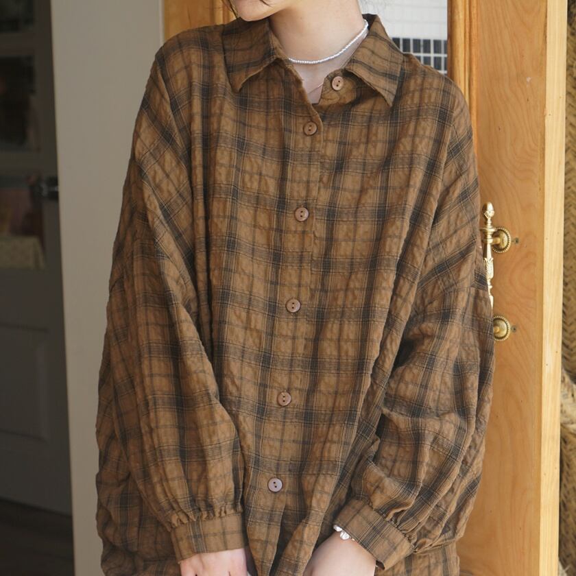 チェックドロップショルダーシャツ T0365