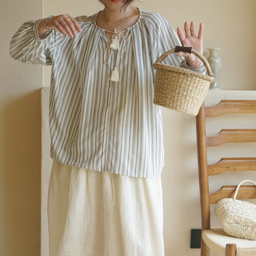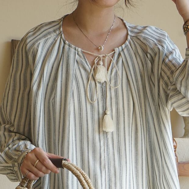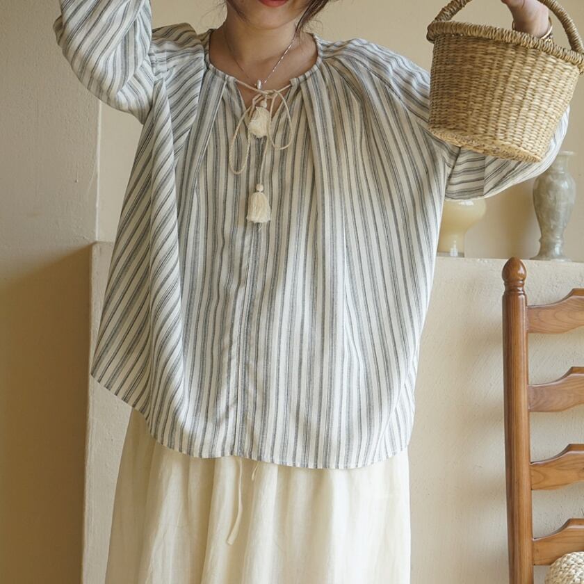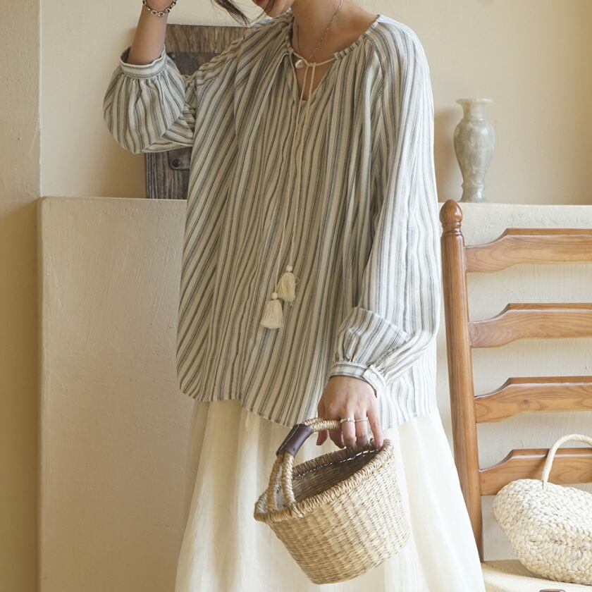 タッセルストライプブラウス T0367