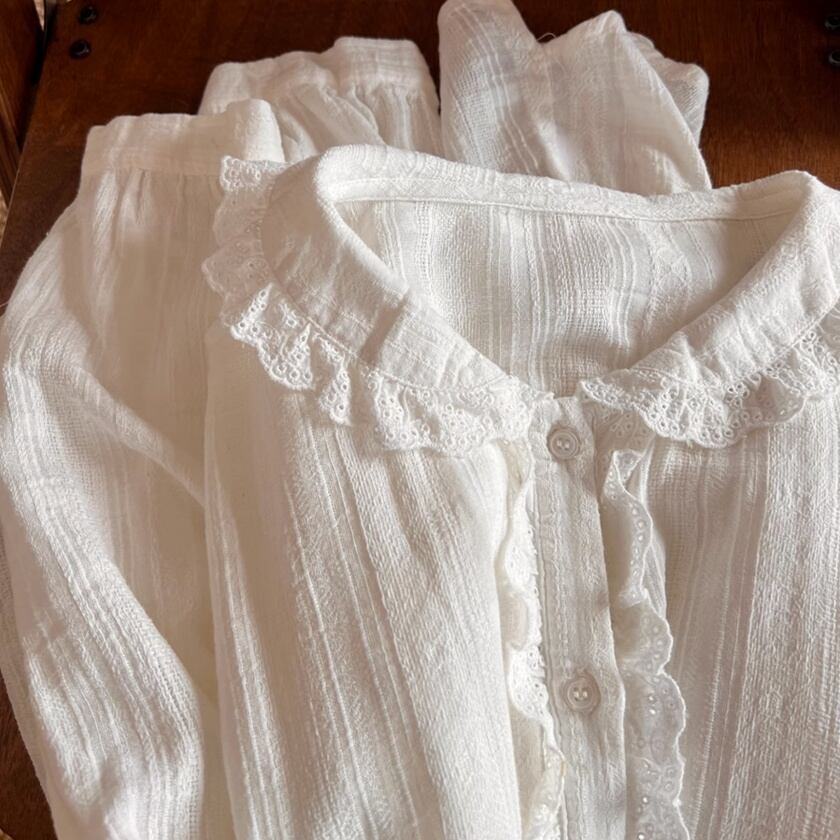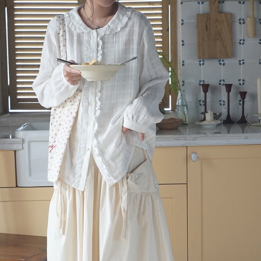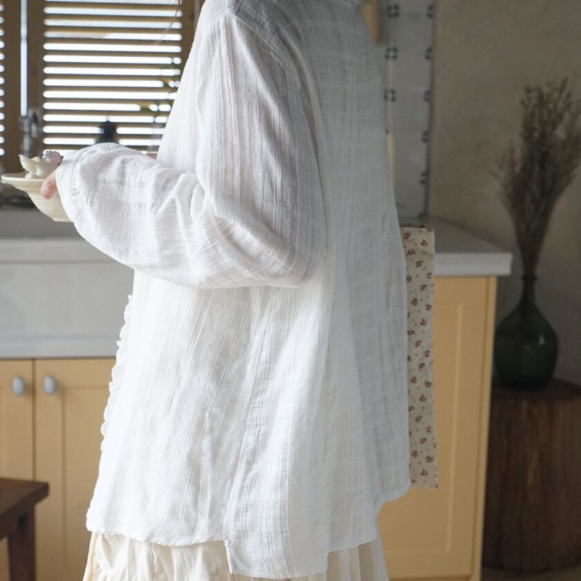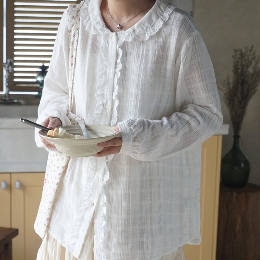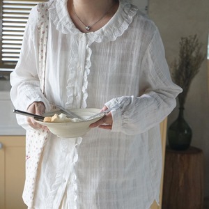 レースフリルデザインブラウス T0389
