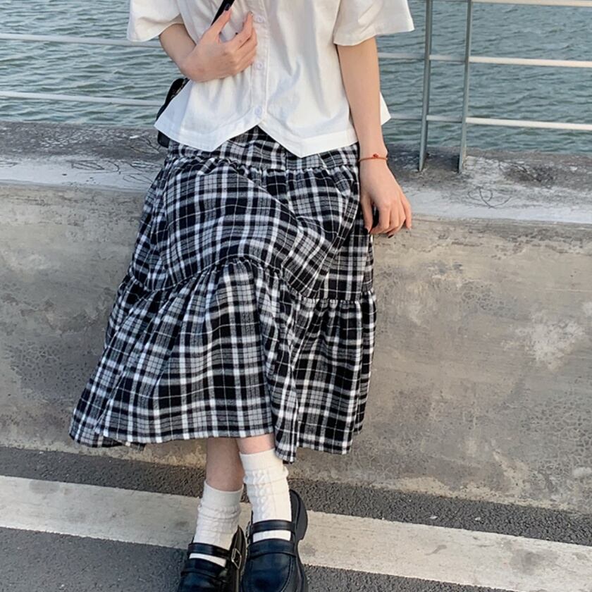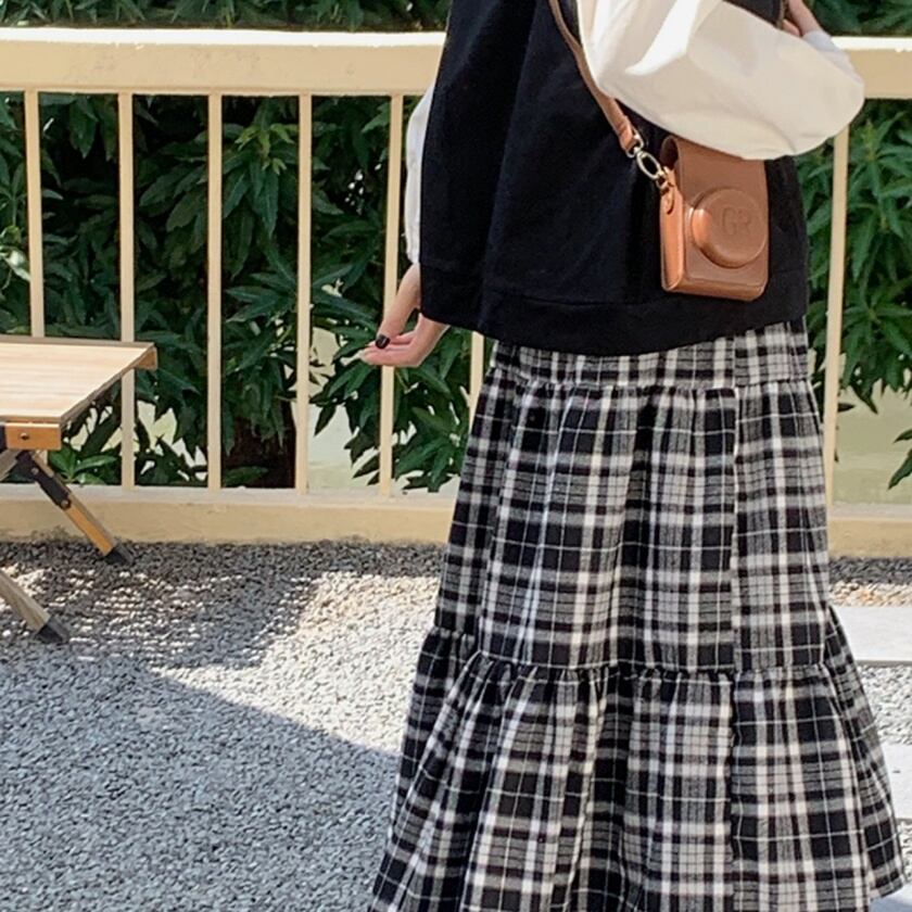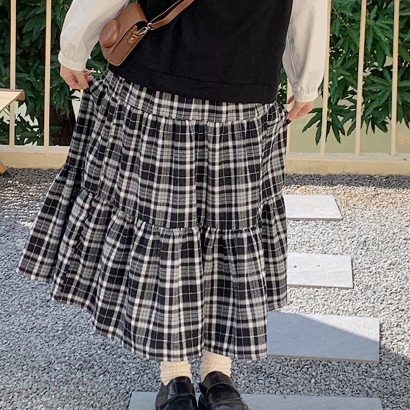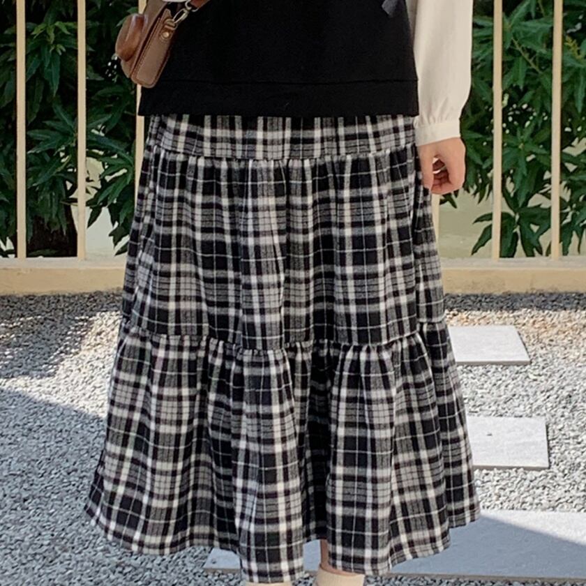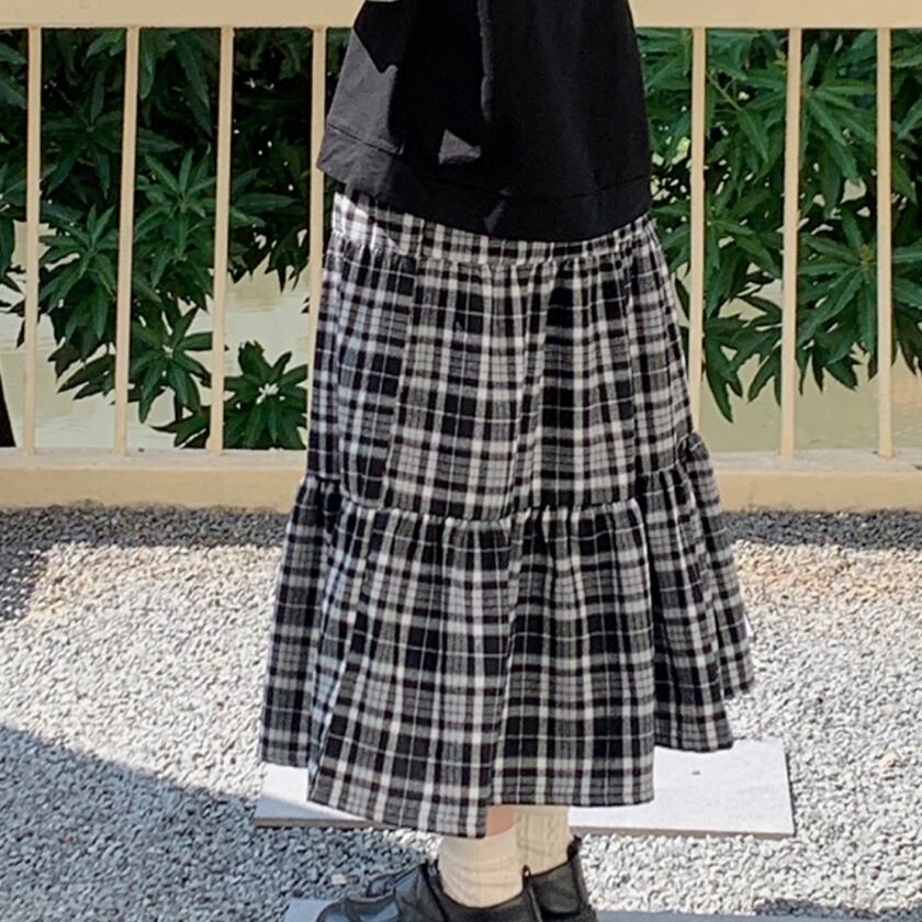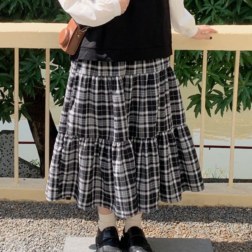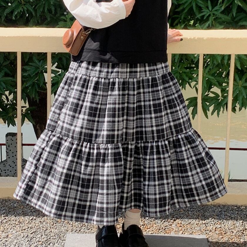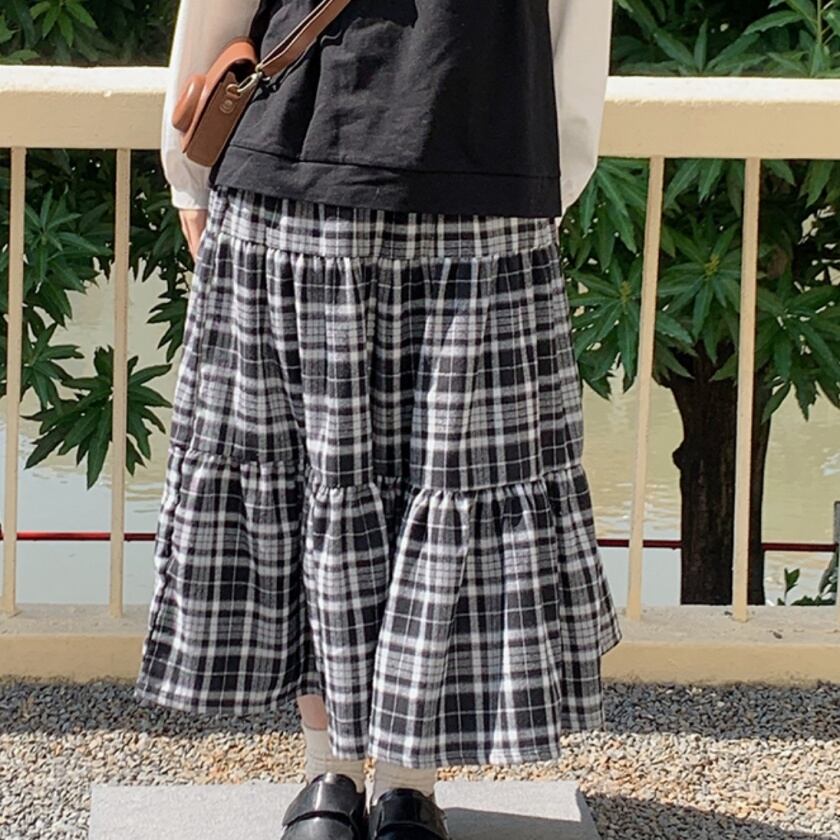 チェックティアードスカート T0391
