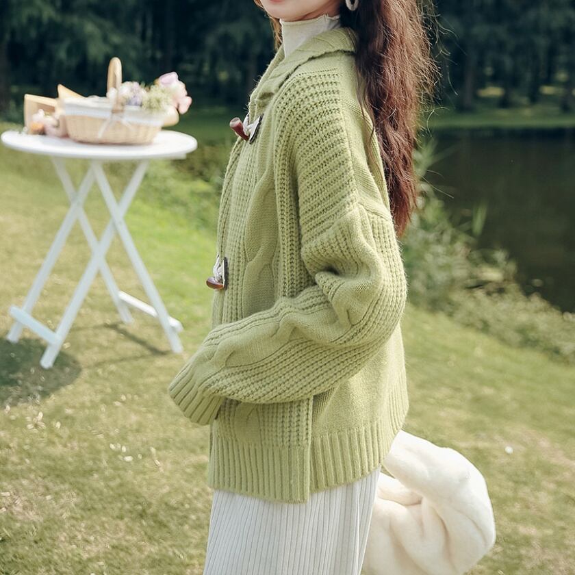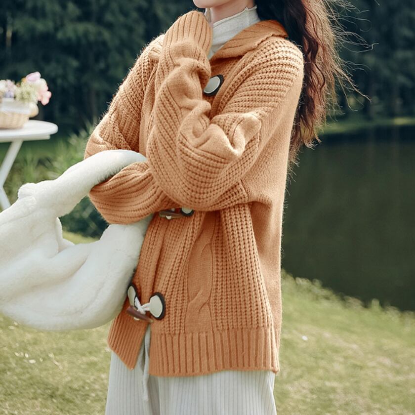 ダッフルボタンニットカーディガン T0396