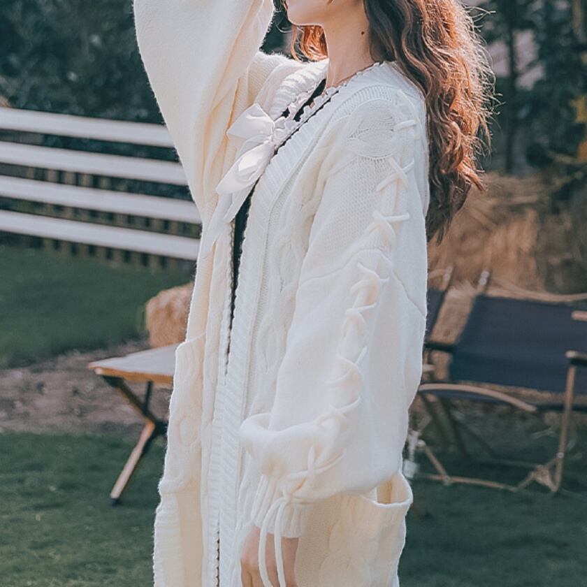 リボンデザインポケットコーディガン T0403