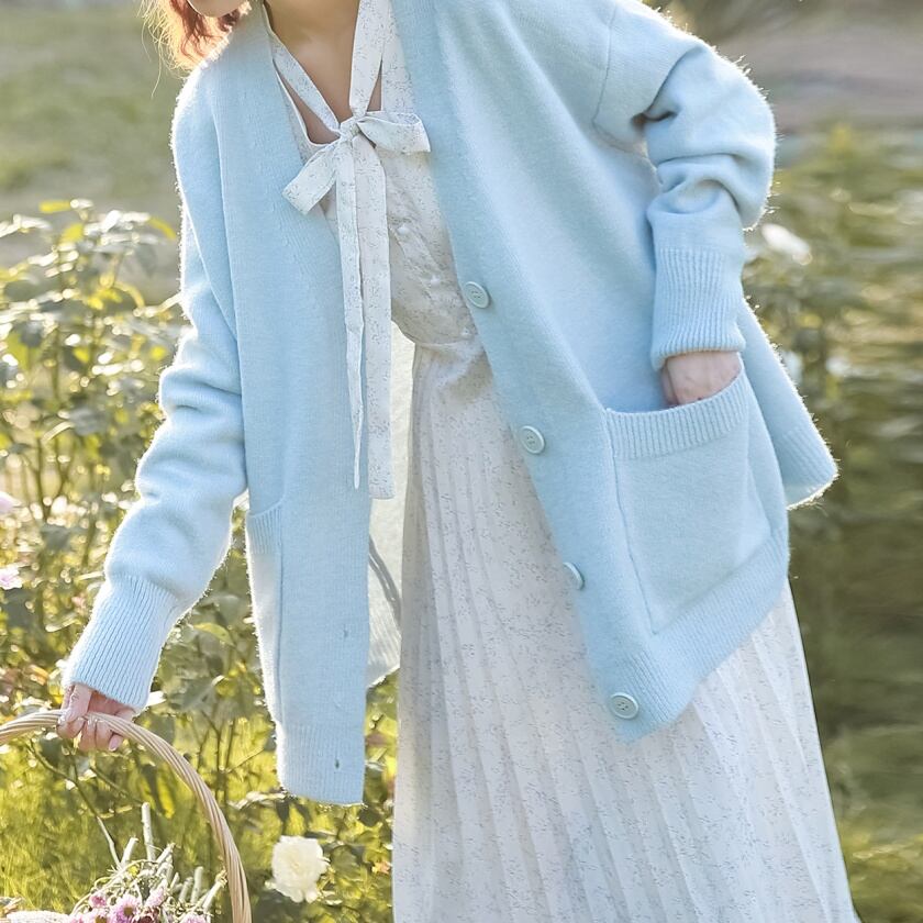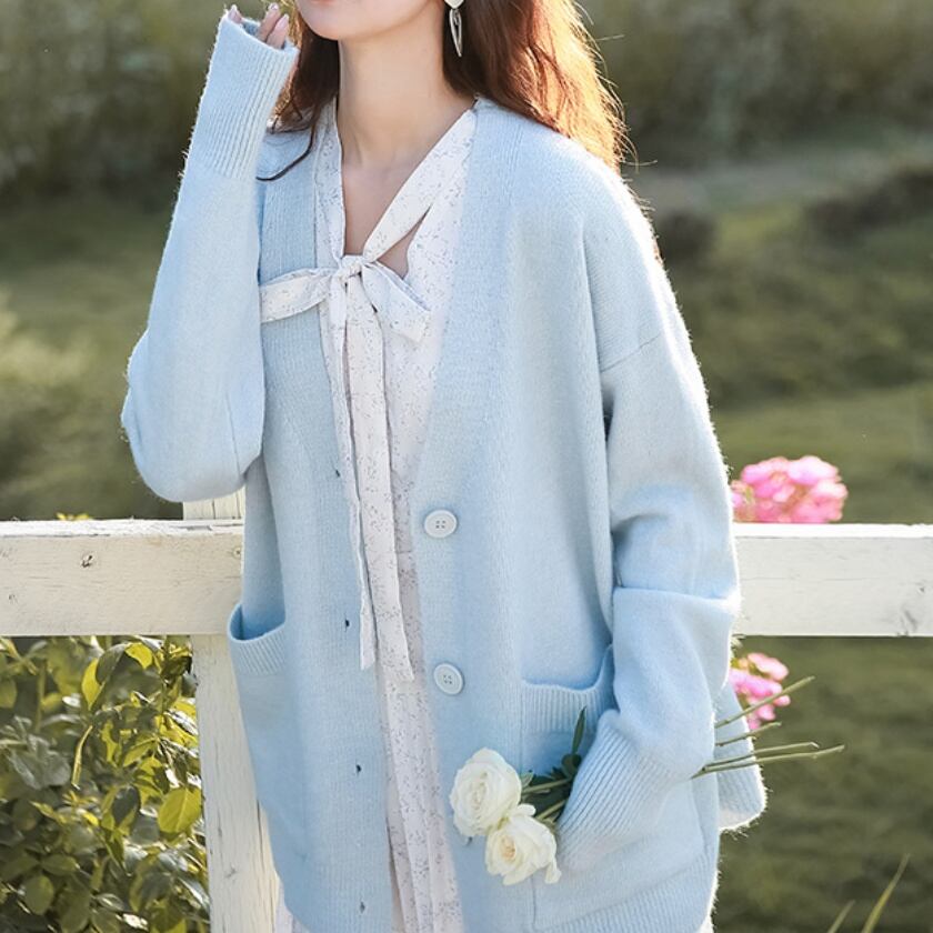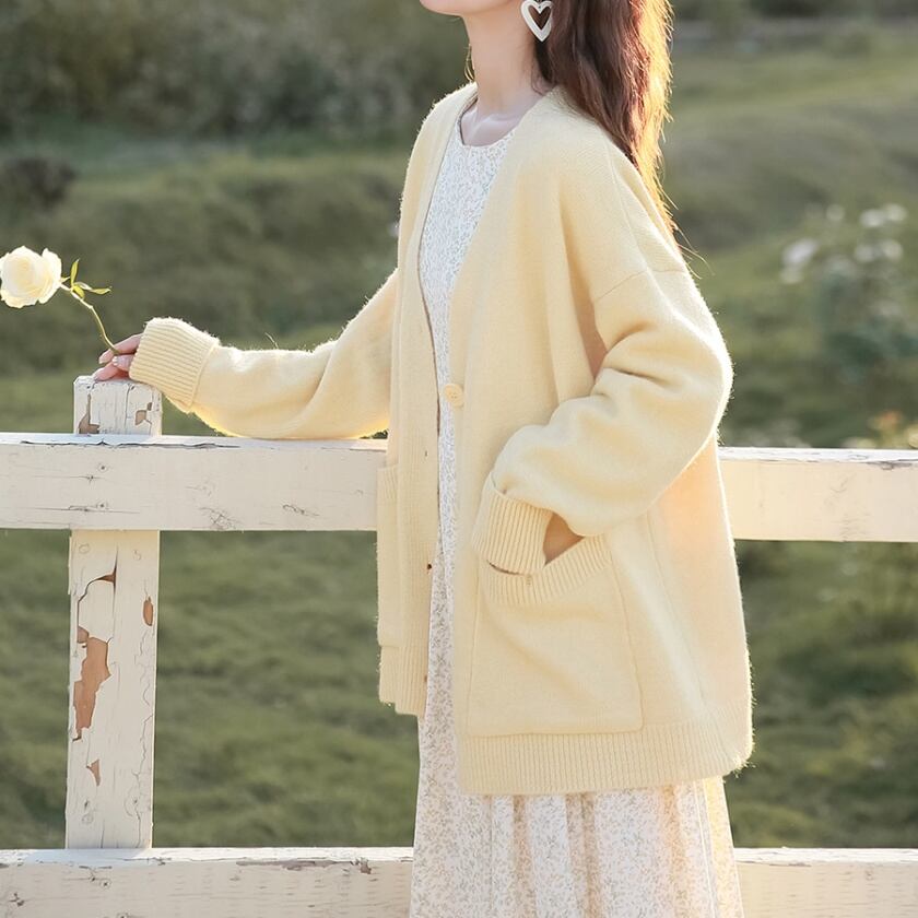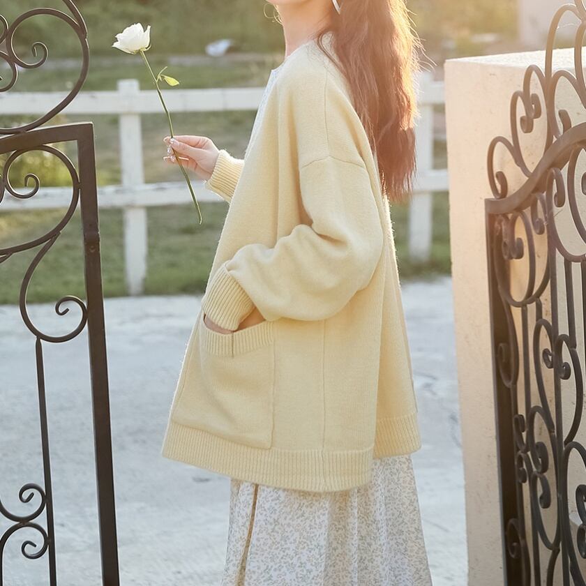 Vネックポケットニットカーディガン T0405