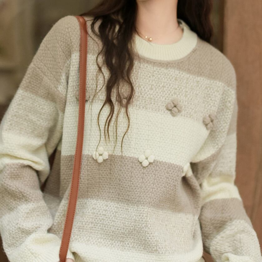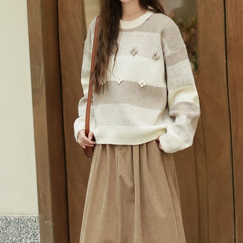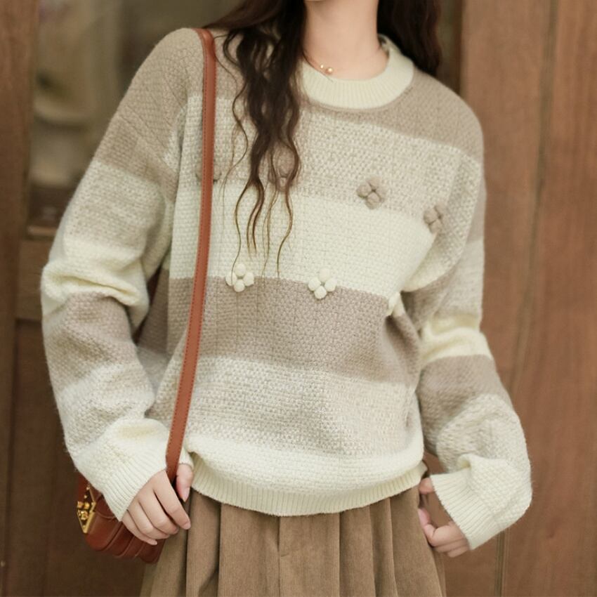 フラワーニットボールプルオーバー T0434