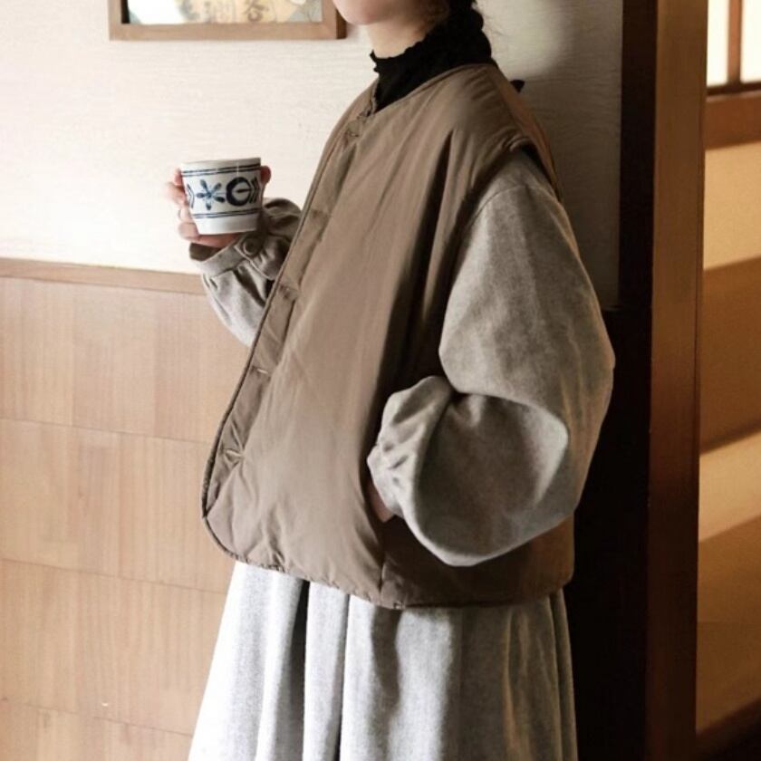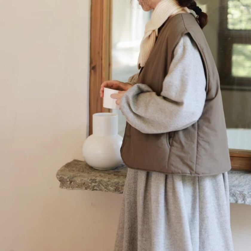 ノーカラーサイドポケットベスト T0132
