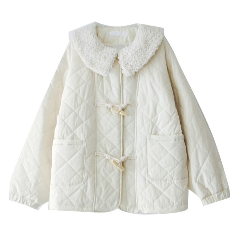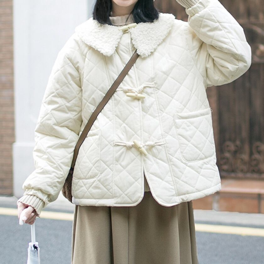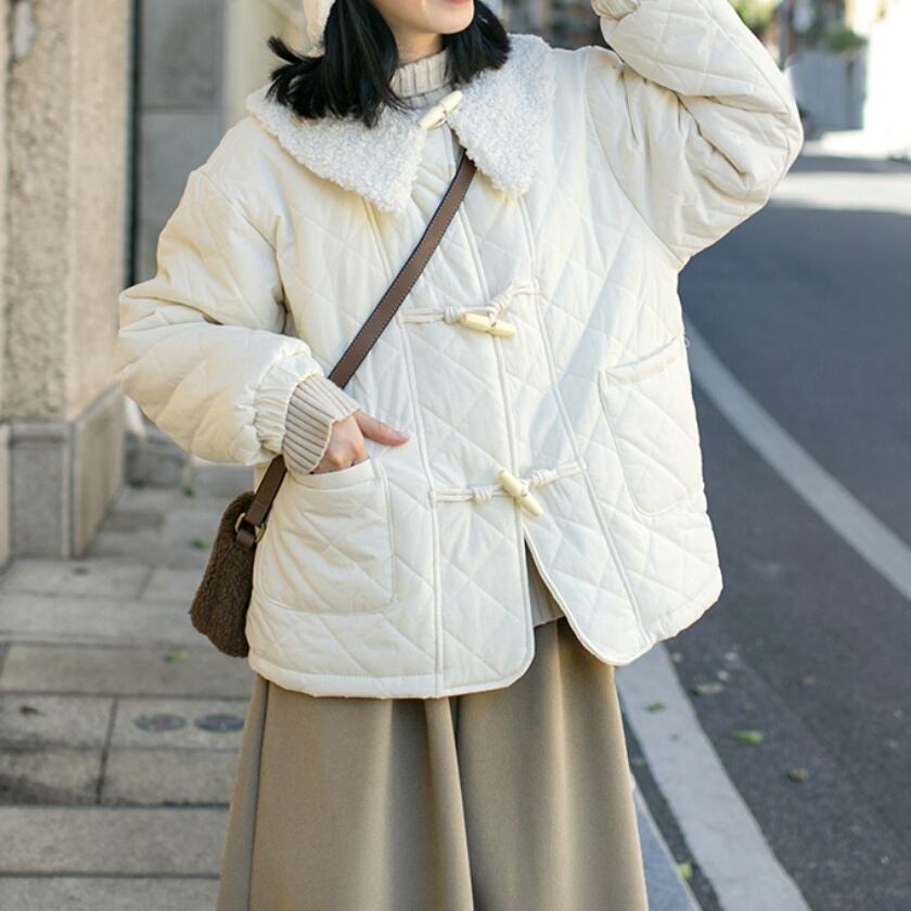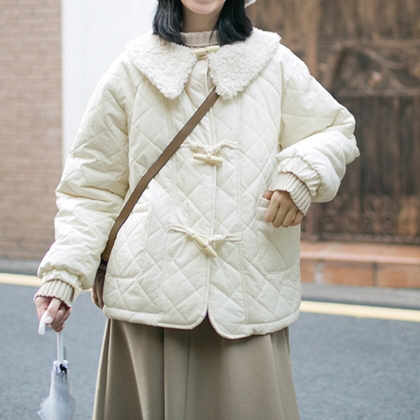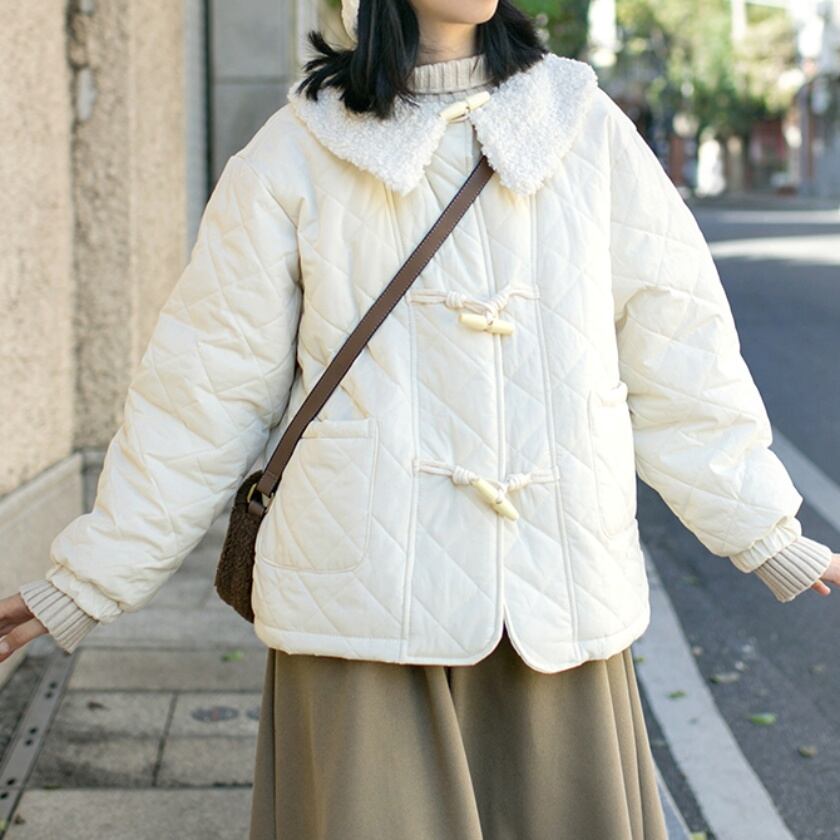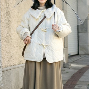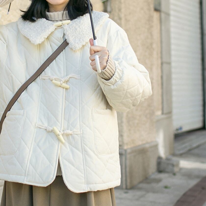 キルティングボアカラーダッフルジャケット T0448